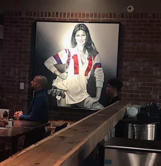 Felici di questi primi due dipinti integrati perfettamente nel loro ristorante, i proprietari ne hanno commissionati altri tre di cui uno è stato poi esposto in un nuovo locale Red Door e si intitola “Kansas City Bomber”. Come si evince dal titolo, l’opera è ispirata al celebre film degli anni 70 la
