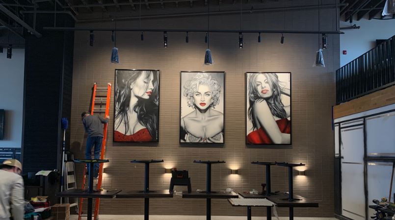 La bellezza di tre opere di grandi dimensioni destinate ad allestite la parete centrale del locale entusiasma l’artista. I soggetti richiesti sono altre tre bellissime Star americane : Madonna, Halle Berry e Eva Mendes.