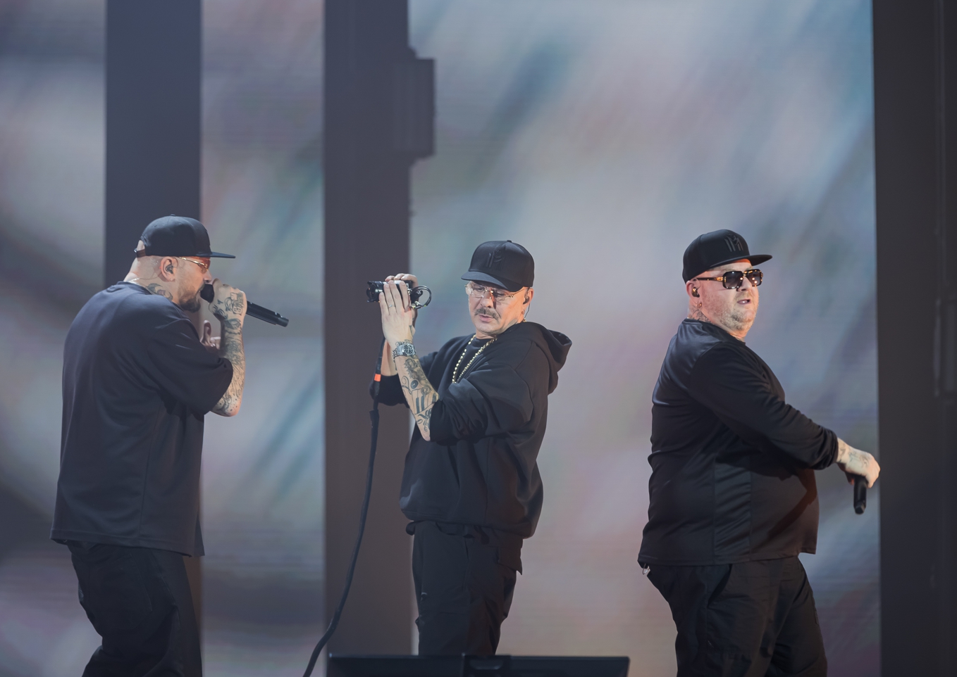 Un concerto che mette in evidenza la rilevanza attualissima che il trio ha e la presa transgenerazionale della sua musica. Che a questo punto si muove su due livelli: la nostalgia per uno stile old school che resta inimitabile, e la forza propulsiva dei nuovi pezzi usciti quest’anno, che li fanno stazionare nella top 20 italiana da gennaio. Dal vivo i visual curati da Fabrizio Conte e l’ironia con trovate sceniche e balli festosi aggiungono fuoco al mito.