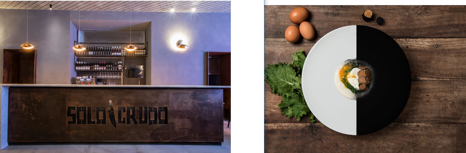 Lo chef di Solo Crudo è Riccardo Rossetti, con una solida esperienza alle spalle in tristellati Michelin come Kitcho a Kyoto e con Pietro Leemann di Joia, una delle massime autorità se si parla di cucina vegetariana, oltre ad essersi cimentato nella direzione della cucina dell’Antica Pesa di New York.