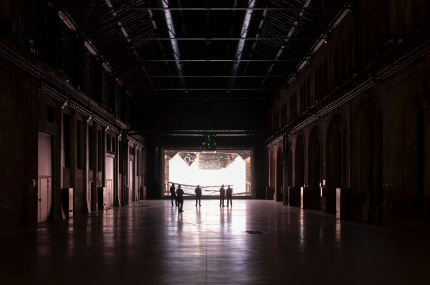 Attraverso la sua sensibilità cinematografica trasgressiva e una logica animistica, Retinal Rivalry trasforma le immagini cinematografiche in sculture pensate su misura per le ex officine dei treni OGR, offrendoci un mondo intriso delle contraddizioni che negoziano lo spazio pubblico. Il suo titolo riflette il concetto di “rivalità retinica”, un fenomeno ottico che si verifica quando agli occhi si presentano contemporaneamente due immagini contrastanti. Invece di fonderli in un’unica immagine, la nostra percezione li alterna, cercando una conciliazione impossibile.