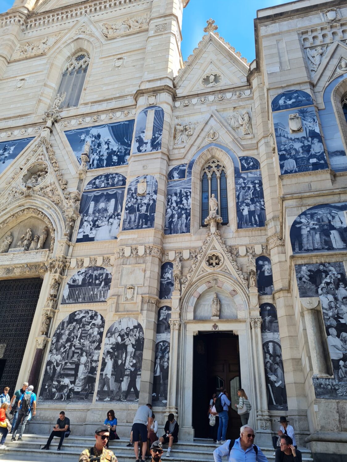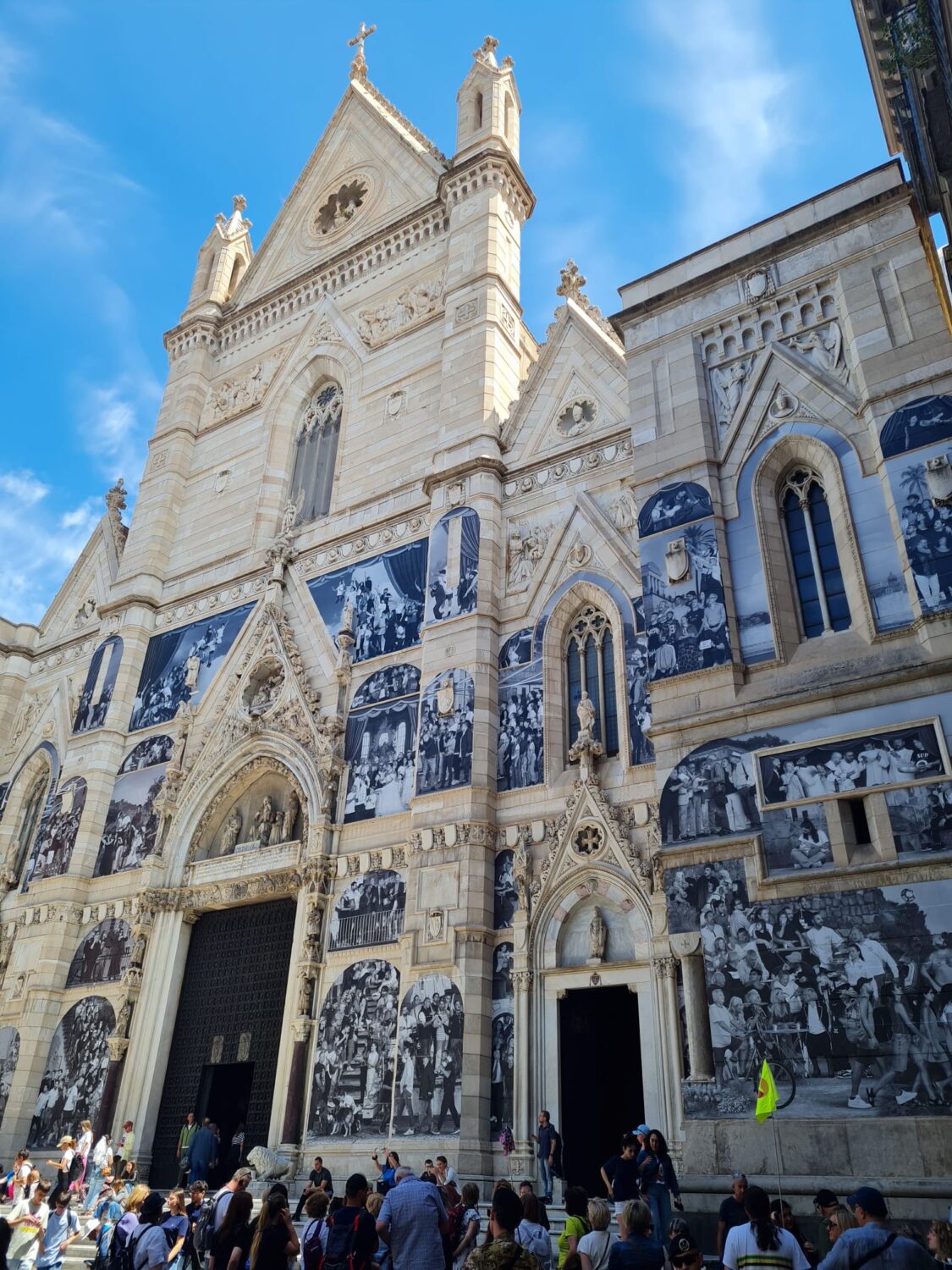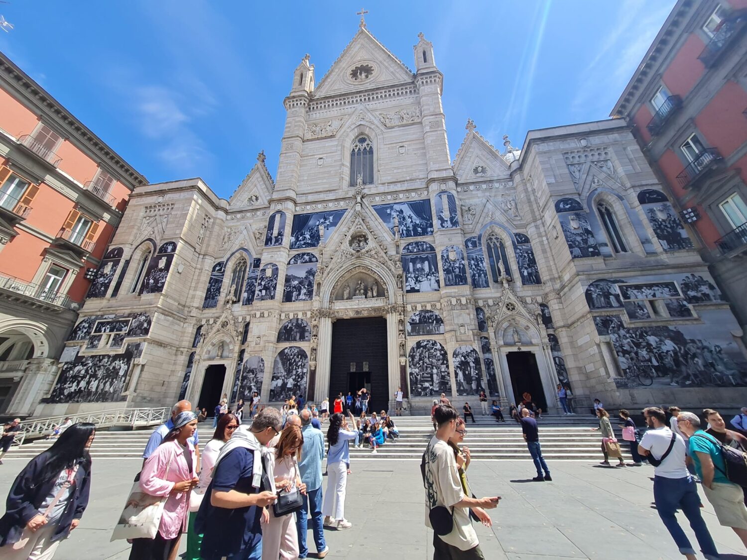 L’opera site-specific di JR è visibile a via Duomo, davanti alla facciata della “Cattedrale di San Gennaro”, Duomo di Napoli, trasformata in un mosaico di volti locali, incarnando lo spirito comunitario, la resilienza, l’energia e l’anima polimorfa della città. L’inaugurazione dell’opera, aperta alla cittadinanza, si è svolta alla presenza dell’artista, di Michele Coppola, Direttore Generale delle Gallerie d’Italia, del sindaco di Napoli Gaetano Manfredi, di Mons. Gennaro Matino, Vicario Generale Arcidiocesi di Napoli e di Padre Antonio Loffredo, Vicepresidente della Fondazione Napoli C’entro. La collaborazione dell’Arcidiocesi di Napoli, attraverso la Fondazione Napoli C’entro, è stata fondamentale per consentire la realizzazione dell’opera su un luogo sacro per la città, riconoscendo il valore sociale e simbolico del progetto di JR.