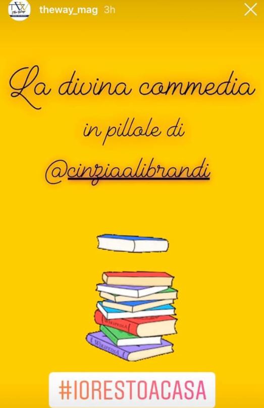 RICORRENZA – Intanto oggi, il 25 marzo è la giornata nazionale dedicata a Dante Alighieri. Sul canale Instagram e Facebook di The Way Magazine già da questa settimana ci sono le “pillole” di Cinzia Alibrandi sull’opera più celebrata del sommo poeta: “La Divina Commedia in Pillole” conduce i followers di The Way Magazine in una riscoperta veloce e accattivante dell’opera letteraria che ha fondato l’identità della lingua italiana nel 1300.