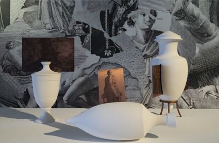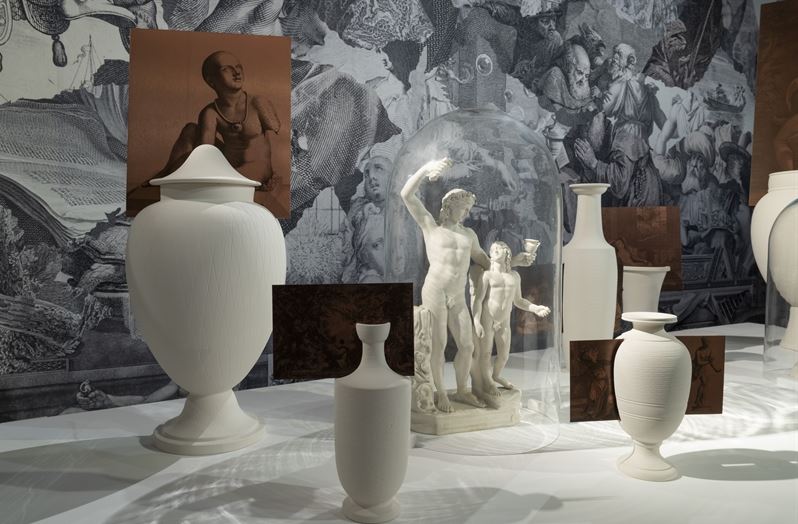 A Napoli al Museo e Real Bosco di Capodimonte, “L’Arte del Danzare assieme”, a cura di Angela Tecce e Sylvain Bellenger, è inserita nell’ambito delle mostre-focus “Incontri sensibili” che mettono in dialogo artisti contemporanei con la collezione storica del Museo e Real Bosco di Capodimonte. Un parato che richiama la tecnica del restauro a ‘pastiche’ riveste la sala espositiva e conduce il visitatore in una dimensione avvolgente, in un gioco di sovrapposizioni di immagini digitali tratte dagli archivi della Biblioteca Nazionale di Napoli e dalle stampe della ricchissima collezione del conte trentino Carlo Firmian, conservate nel Gabinetto Disegni e Stampe del museo. Al centro della sala i suoi vasi in ceramica dialogano con quelli conservati nelle collezioni di Capodimonte.