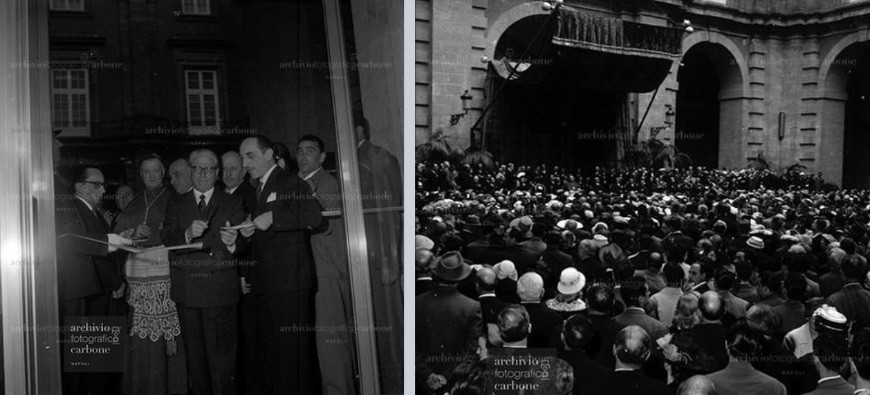 A ripercorrere le tappe principali un testo di approfondimento dell’architetto Rosa Romano con foto e documenti d’epoca della Fondazione De Felice, dell’Archivio Carbone e dell’Archivio Fotografico della Campania, nonché il video inaugurale dell’Istituto Luce.