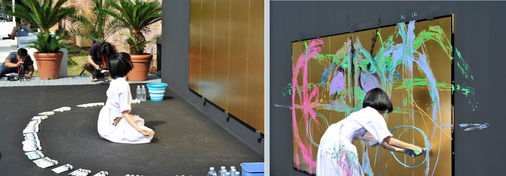 L’artista contemporanea giapponese Miwa Komatsu ha emozionato e coinvolto tutti i presenti lo scorso 30 agosto nei giardini del Lazzaretto Vecchio durante l’esibizione dal vivo che l’ha vista dipingere una tela di 3,72×1,81m all’interno della 76esima Mostra del Cinema di Venezia, in cui è stata nominata nella sezione VR (Virtual Reality) con l’opera ‘Inori‘.
