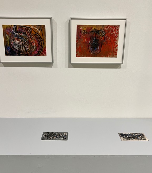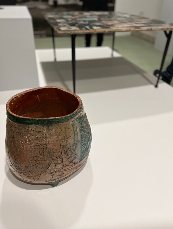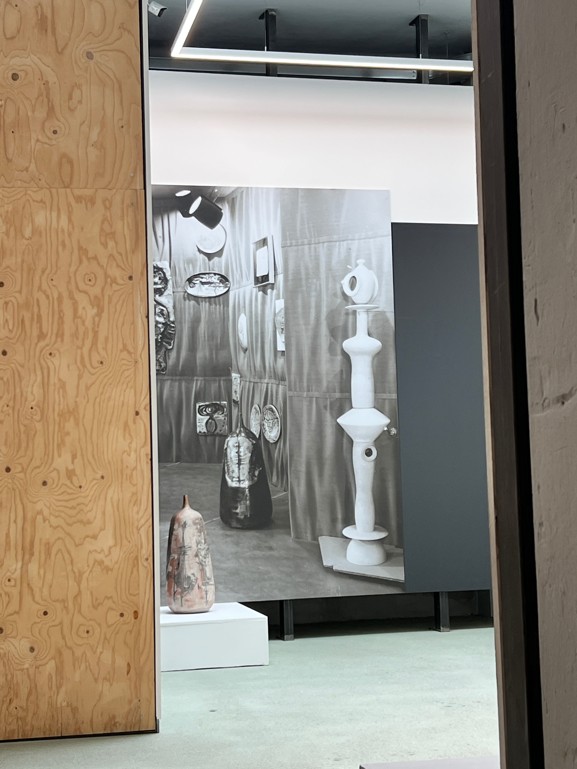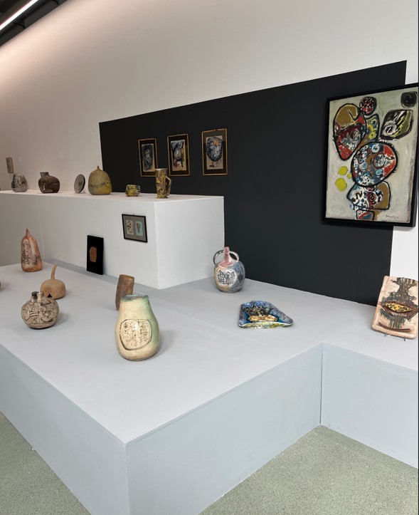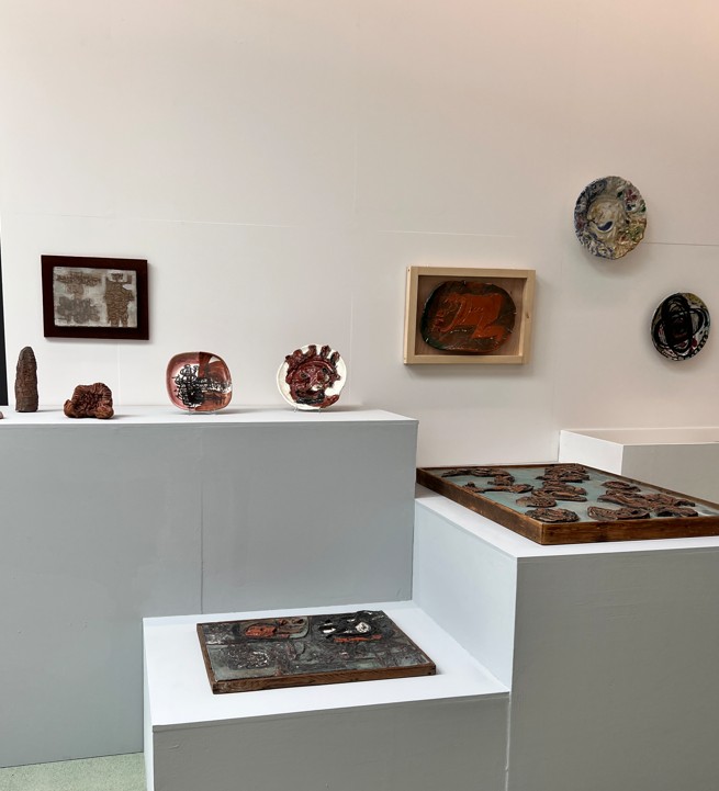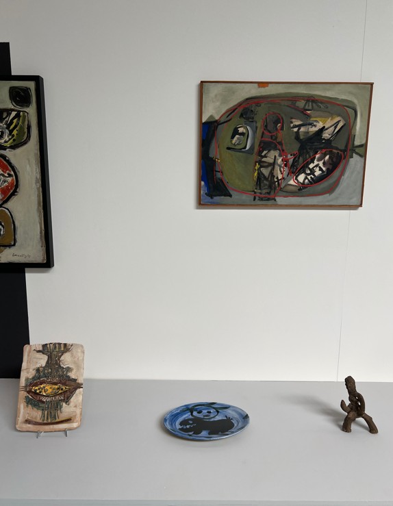 Les Monstres Amis ricrea l’ambiente della sala delle ceramiche della Triennale, che nel 1954 ospitava opere realizzate ad Albisola nell’estate precedente da artisti come Enrico Baj, Sergio Dangelo, Corneille, Asger Jorn, Roberto Matta, Lucio Fontana e lo stesso Emilio Scanavino, all’interno di una scenografia curata da Joe Colombo.