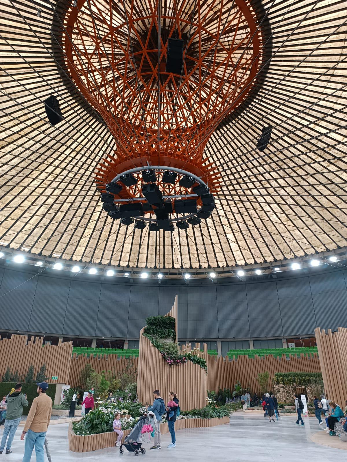 mirador, le isole galleggianti e la progettazione e costruzione dei padiglioni della Regione Liguria e di Confagricoltura con il caratteristico nido.