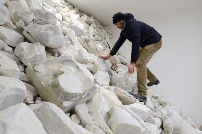 Fabio Viale ha un rapporto assai speciale con le cave di Carrara, dove dai tempi di Giulio Cesare si estrae il marmo più puro al mondo. Molte delle sue più note sculture sono state scolpite nel marmo statuario, considerato il più pregiato per la sua lucentezza e morbidezza. Viale si trova a casa sua tra queste pareti bianche come la neve, ha afferrato segreti tecnici dai vecchi cavatori, su come maneggiare i macigni e come intuirne la forma migliore, e ha acuito la sensibilità per riconoscere qualità e pregi della pietra da scolpire.