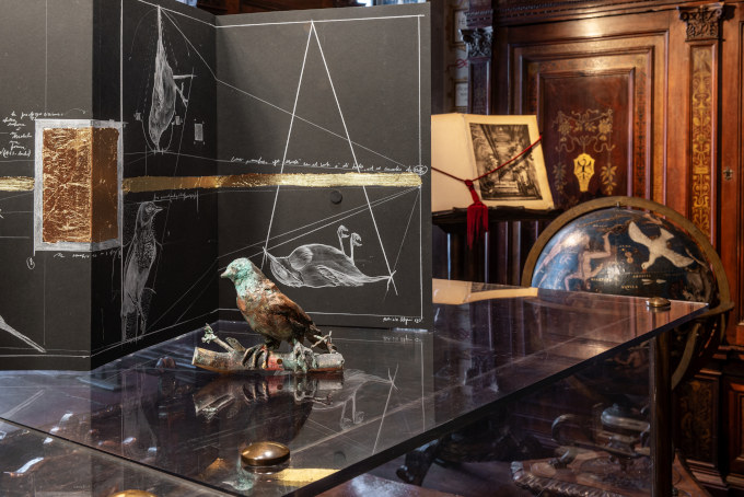 Il fulcro di questo incontro è la Biblioteca storica, autentica Wunderkammer dove – tra le mirabilia e gli strumenti scientifici rinascimentali – il libro d’artista How to Explain to Birds that the Sun Belongs to Everyone si posa sul grande tavolo ligneo quattrocentesco, come reliquia poetica dedicata al volo degli uccelli.