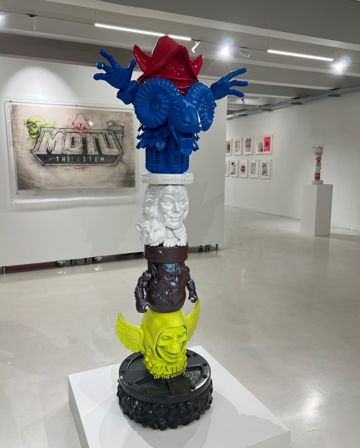 Fidia Falaschetti, cresciuto con il mito dei giochi Mattel e soprattutto di Masters of the Universe, ha da sempre esposto opere riferibili al mondo del gioco. Con messaggi potenti e diretti, si è servito dei materiali, colori e dimensioni tipiche del giocattolo per farsi strada con la sua arte. Il risultato è che è oggi molto più famoso in America, dove conta svariati clienti affezionati nello star-system, che in Italia.