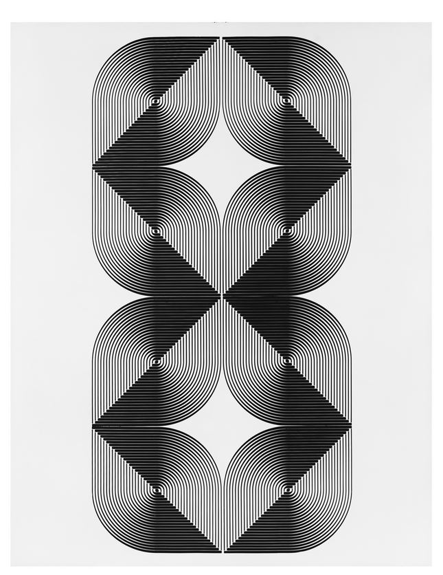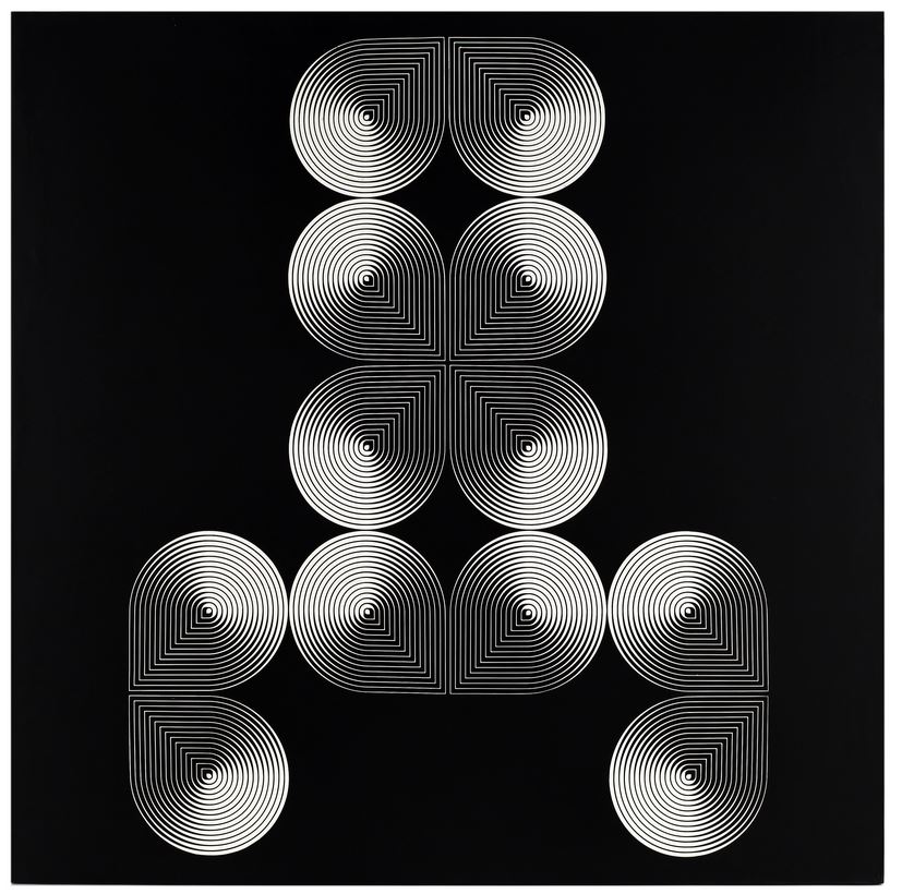 FRANCO GRIGNANI, Induzioni abbinate, 1966, sperimentale ottico su tavola, 70×70 cm