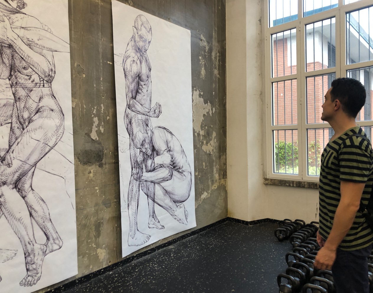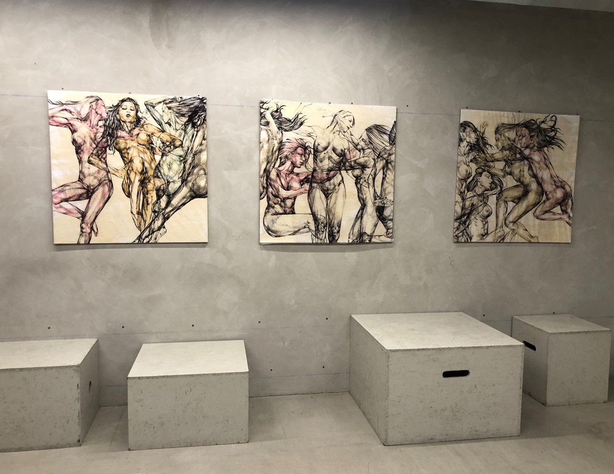 Il magnifico spazio di Sara Ventura sui Navigli a Milano ha fatto da scenario a una mostra di opere gigantesche su carta. In una sala ginnica dove si allenano pugili, la delicatezza delle opere dell'artista.