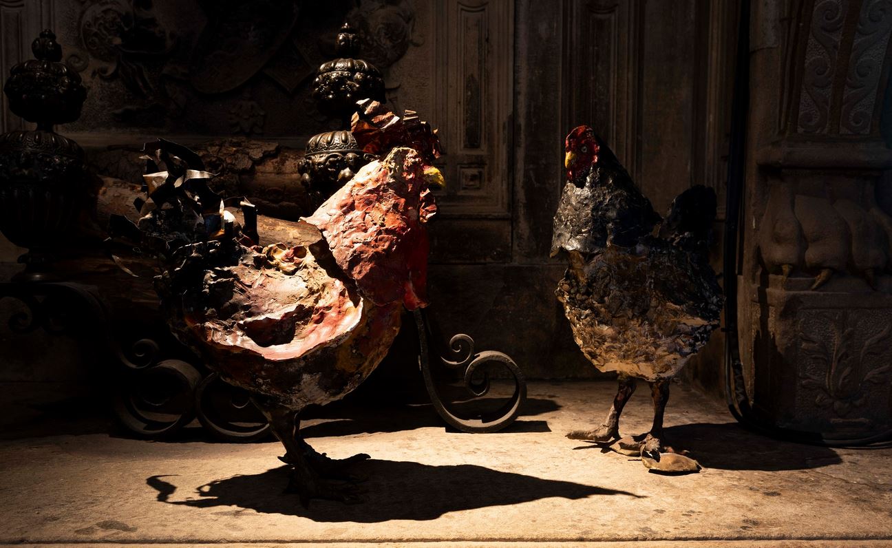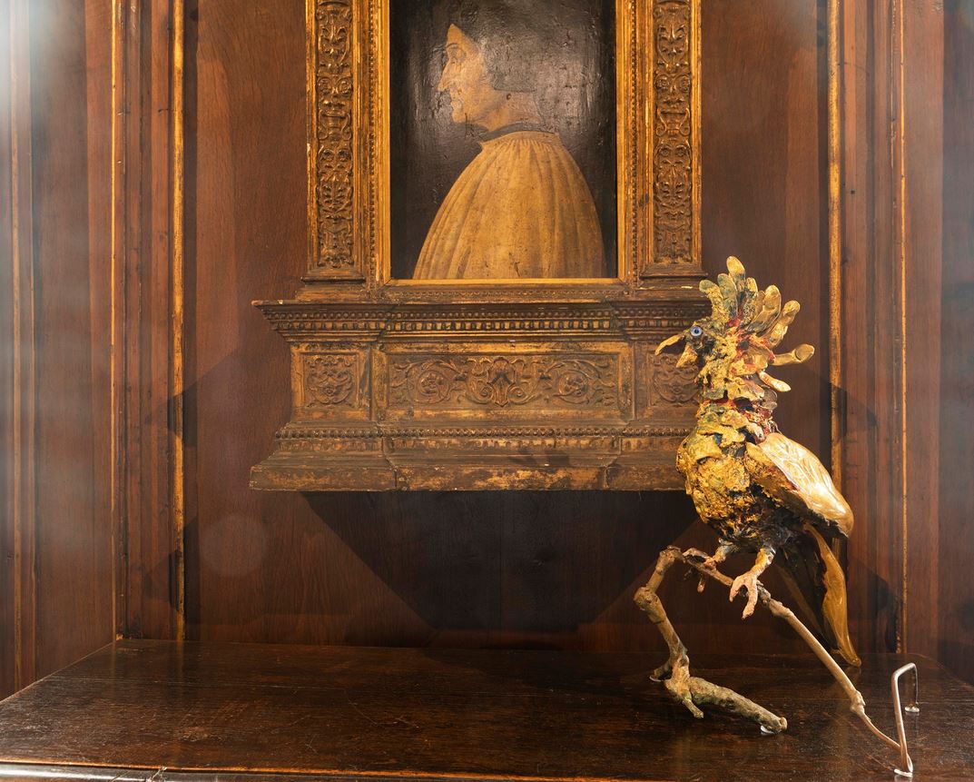 Alla collezione permanente del Museo Bagatti Valsecchi, dove l’artigianalità d’eccellenza è di casa, si affianca così il nutrito nucleo di uccelli – forse la produzione più singolare e poetica di Toni Zuccheri – dove il vetro incontra materiali eterogenei per dar vita a upupe, galli, anatre: pezzi unici dove la natura è esaltata dalla personalissima scelta dei mezzi espressivi. Un lavoro poliedrico quello dell’artista, che al vetro dedica la propria vita, sperimentando sempre nuove tecniche e facendo ampio uso dei più diversi materiali legno, foglie secche, sassi, bronzo, pannocchie, supporti spesso di recupero, scelti per l’impronta che la natura ha impresso in loro, per la carica materica, veicolo di memorie personali e collettive.