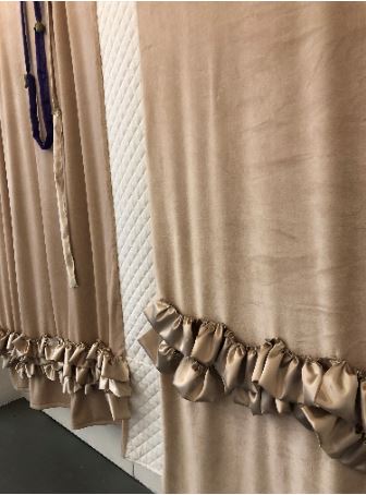 Arrivati a NoLo a Milano ci si mette subito a caccia di spazi creativi. E La Schiavo Zoppelli Gallery, di recente apertura nel quartiere frizzante dove la sperimentazione è di casa, è perfettamente inserita in questo mood di scoperta metropolitana. Con la mostra di Sara Ravelli (Crema, 1993) “Tamed Love”, il potenziale comunicativo della carica sentimentale degli oggetti e l’idea di funzionalità compromessa e traumatizzata, sono disposti in uno scenario altamente teatralizzato in uno spazio sorprendente all’interno di palazzi. L’artista sottolinea le tensioni tra contesti sociali ed emotività indagando nel rapporto tra uomo, animale e oggetto. Ma è il travestimento con i “Vetements” appesi alle mura a destare più interesse nel visitatore: ci sfilano davanti esperienze affettive, interpretazioni soggettive e tutto il dramma dei vestiti delle parate. Solo che qui si tratta di ornamenti tipici equini, quelli che servono ad “addobbare” i cavalli nelle gare. Quindi i tessuti esposti creano una tensione emotiva che rimanda alle ocasioni pubbliche dove (sia gli uomini che gli animali) tendono per necessità a essere (e vestire) qualcos’altro dal sè.