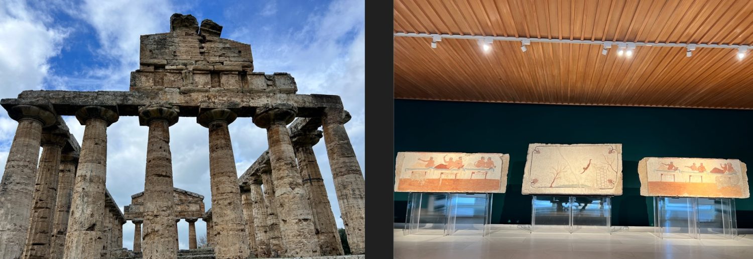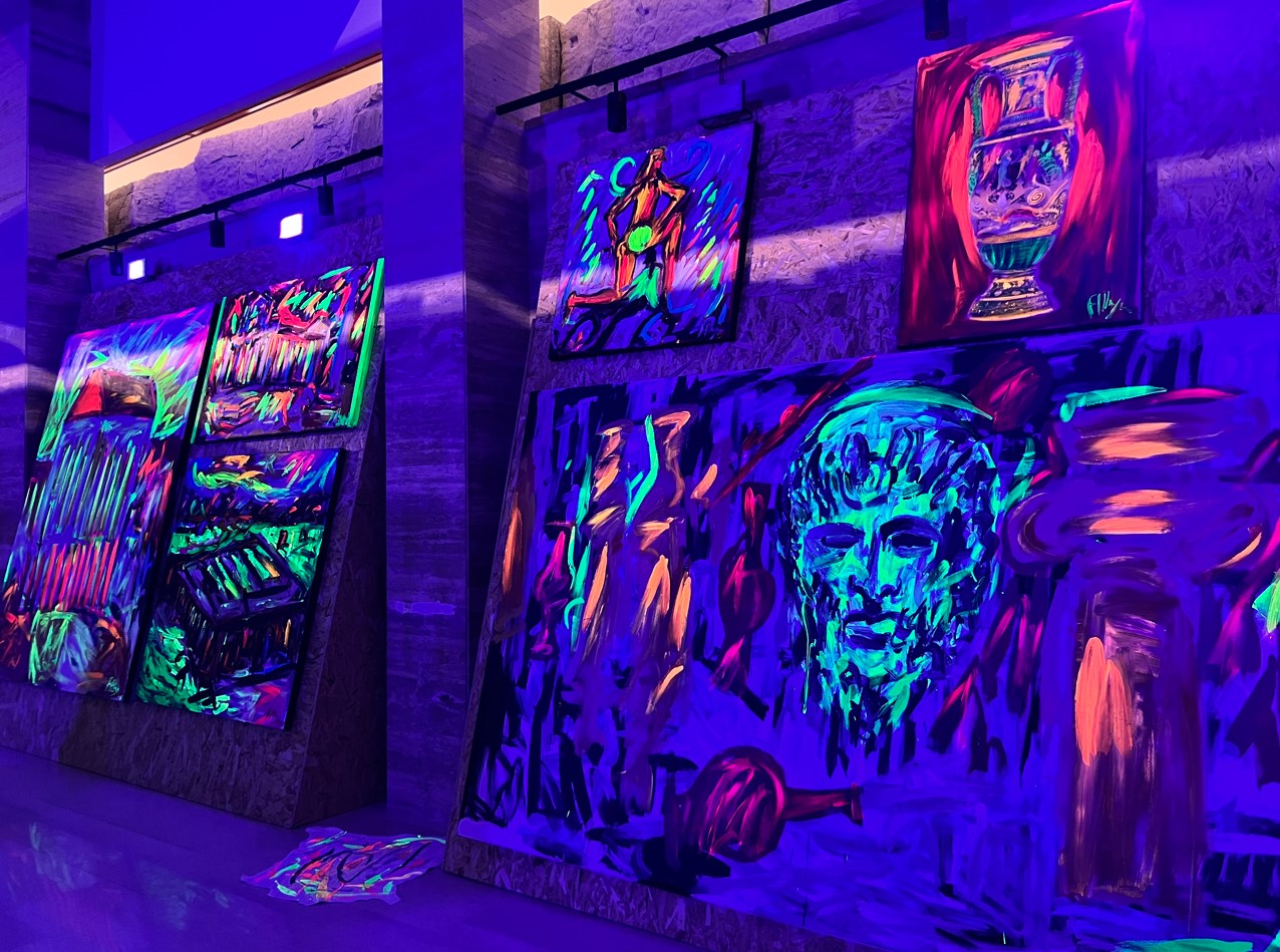Fino al al 12 gennaio 2025, il Parco archeologico di Paestum ospita “Segni Epocali. Fernando Mangone racconta Paestum”, un’autentica novità per le esposizioni del sito antico della cittadina campana. All’interno del museo annesso agli scavi dei mirabili templi della Magna Grecia, si trovano graffiti e opere contemporanee realizzate con tecniche miste e predominanza di tempere fluorescenti, nella Sala Cella del Museo archeologico nazionale di Paestum.