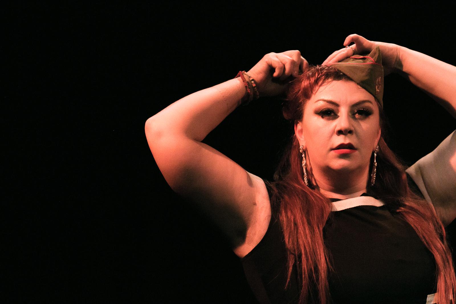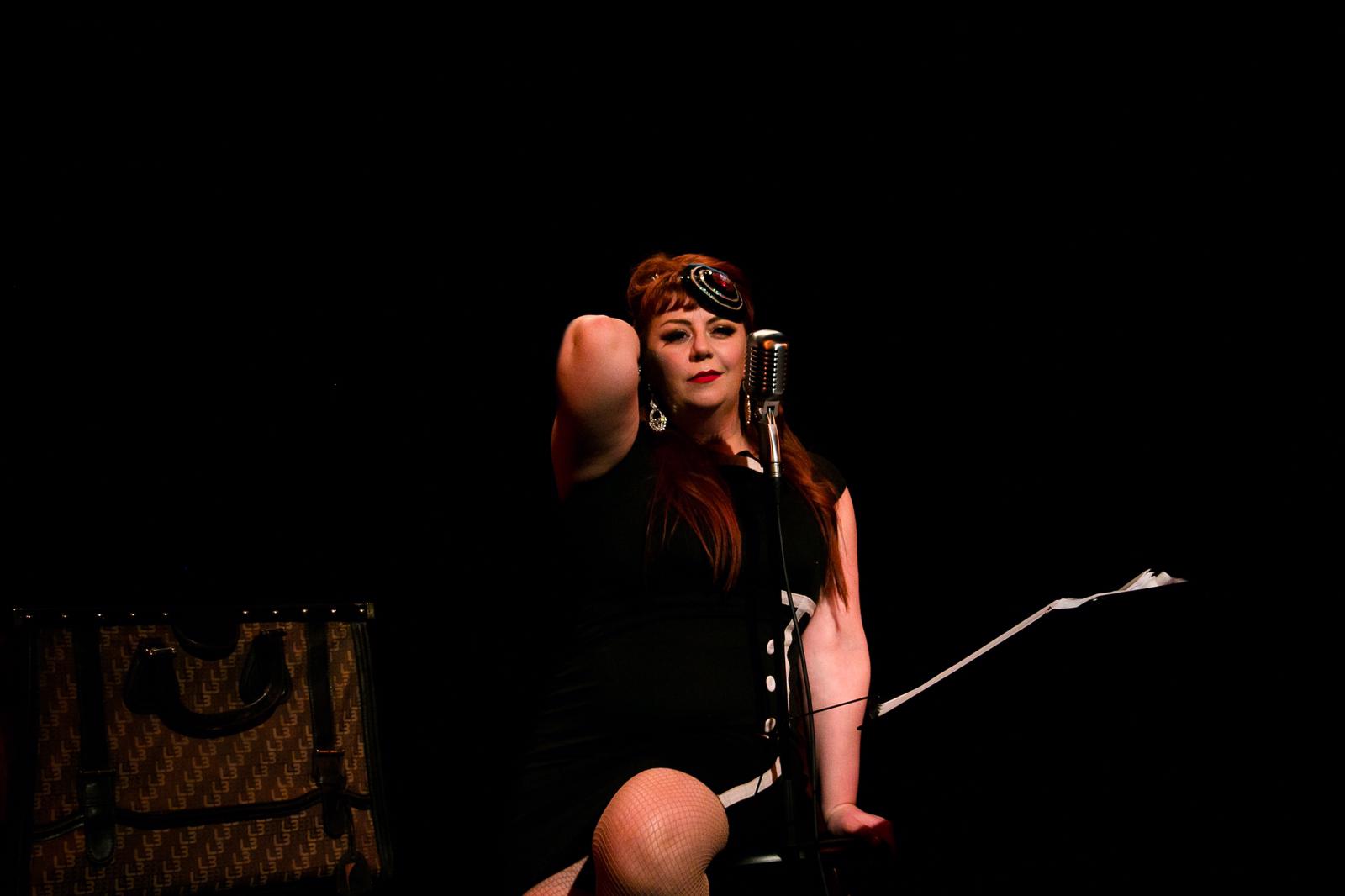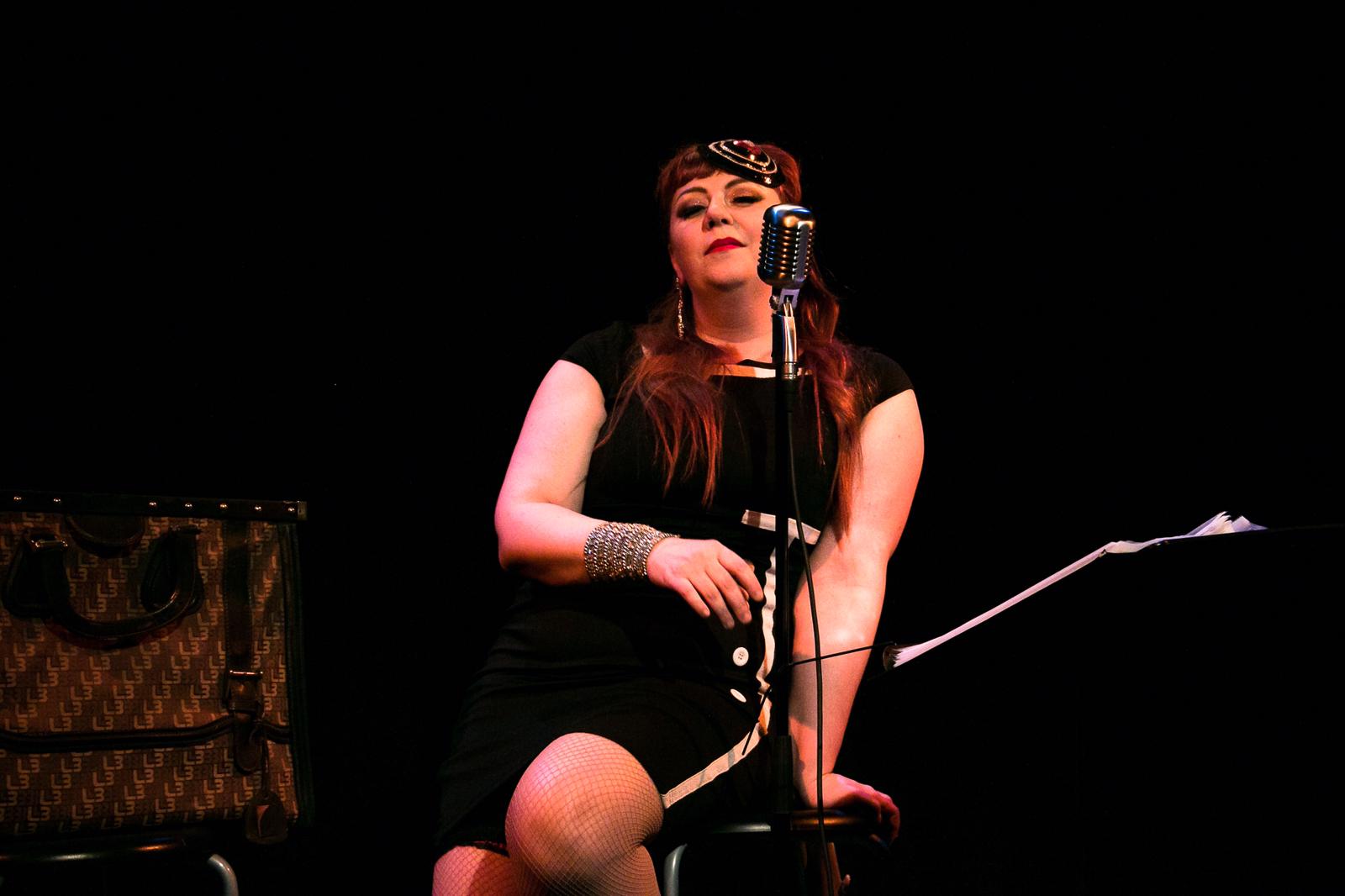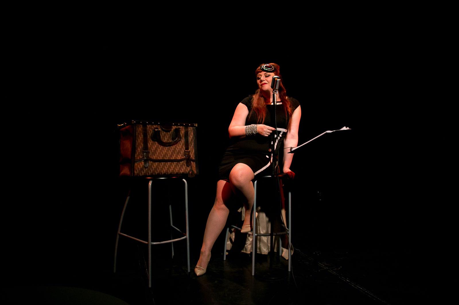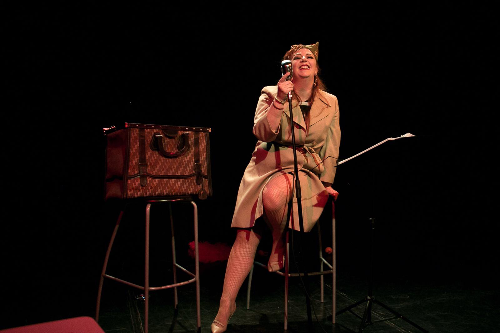 Golden accoglie il pubblico, nella prima parte della pièce, presentandosi come una musicista impegnata in un’orchestra jazz tutta al femminile che nel 1929 si prepara a partire in tour per la Florida “arruolando” tra le proprie fila altre due musiciste, o meglio, due spiantatati musicisti che a causa di forza maggiore sono costretti a fuggire travestendosi da donna. Ricorda qualcosa? Certo, proprio quello. “A qualcuno piace caldo” si trasforma in un episodio della vita di Golden raccontato come un ricordo divertente che appartiene ormai al passato. Il pubblico è immediatamente rapito da “I’m sitting on top of the world”, la prima canzone che introduce la performer, prima di venire catapultato nelle atmosfere hollywoodiane richiamate dai brevi monologhi che ripercorrono le tappe fondamentali del film. Una scenografia minimale è la giusta cornice per l’interprete al centro della scena che passa con nonchalance, da un vestitino anni ’30 ad una divisa militare anni ’40, da un tango a “The apple tree”, da un’orchestra al ponte di un sommergibile.