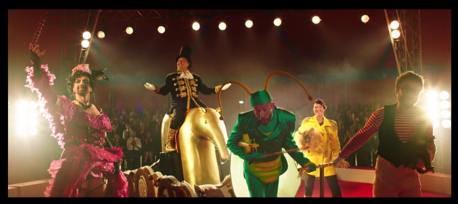 E ne è nato un filmato che si richiama alle atmosfere di The Greatest Showman, il film-musical interpretato da Hugh Jackman nel ruolo di Phineas Taylor Barnum, fondatore del più famoso circo del mondo. Un grande sforzo organizzativo, ma anche un momento di follia e ironia (come nella migliore tradizione di Striscia) con Michelle Hunziker che si esibisce come trapezista, Ezio Greggio ed Enzo Iacchetti nel ruolo di domatori e tutti gli inviati impegnati in una gigantesca danza con le veline e il Gabibbo.