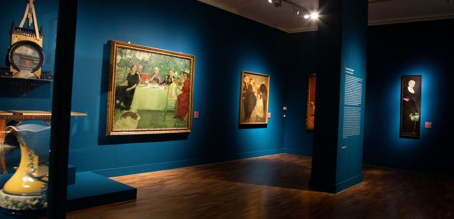 Alla pari di Parigi, Berlino e Londra, Napoli è capitale della modernità e si distingue per la sua recezione allo stile nuovo, Liberty o Floreale, spaziando dalle arti maggiori alle arti applicate, con un successo ottenuto nelle occasioni delle Esposizioni Nazionali e Internazionali. Le opere in mostra dialogano con il Salone del Palazzo e le sue decorazioni, tra le più originali e magnifiche testimonianza del gusto Liberty a Napoli. Un interessante sguardo sul soggiorno a Napoli di Felice Casorati, che prese parte alle prime esperienze dell’avanguardia secessionista, appoggiando le iniziative delle mostre giovanili.