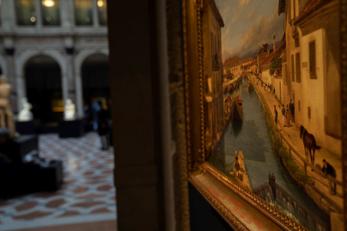 Una panoramica sul tema dell’acqua è offerta da Giuseppe Bisi, Giuseppe Canella, Angelo Inganni e Ippolito Caffi nei loro originalissimi dipinti che catturano la particolare atmosfera di tre città come Milano, Venezia e Parigi. Le acque, quelle dei Navigli, dei Canali e della Senna, erano la componente più affascinante e caratteristica dello scenario urbano.