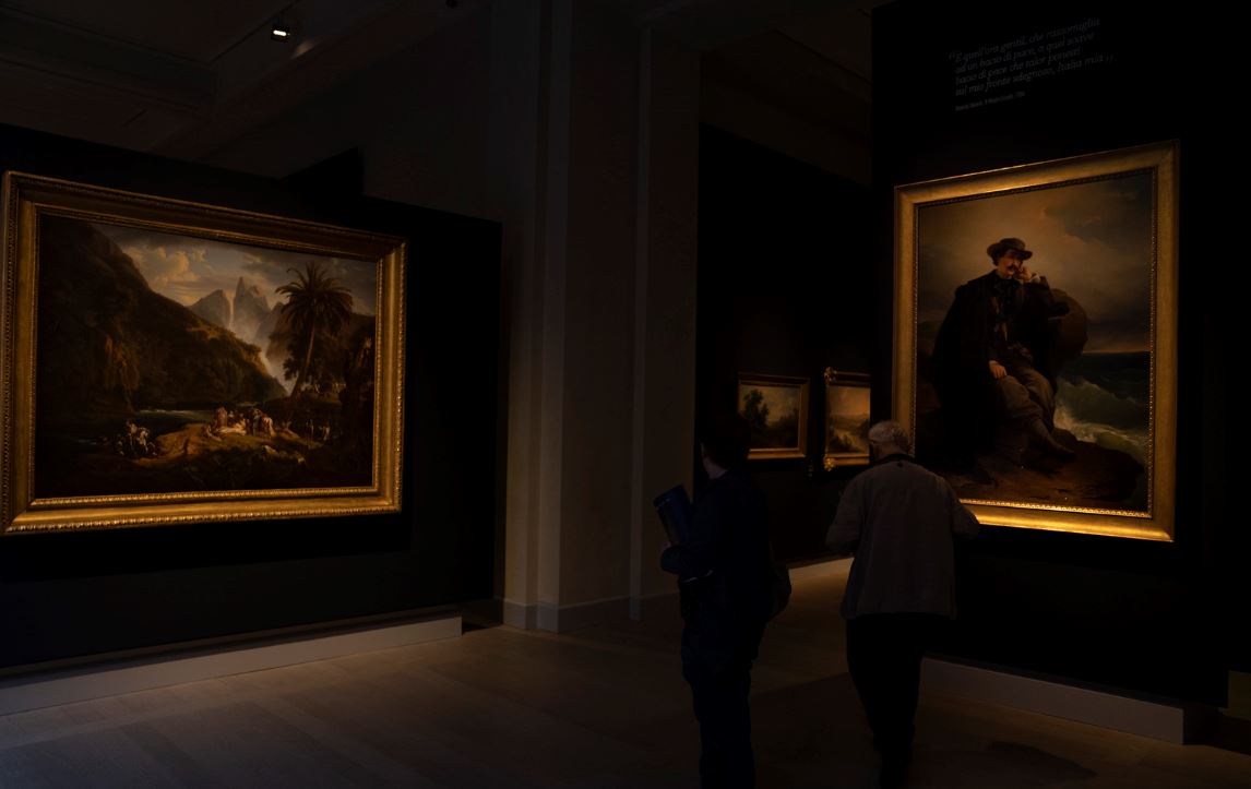 Di queste, 42 non sono mai state esposte prima d’ora: provengono per lo più da collezioni private e comprendono esemplari di Caffi, Hayez, Induno, Molteni; 14 opere inoltre non sono mai state viste in Italia e giungono dalle più importanti istituzioni museali estere, quali il Belvedere di Vienna e l’Ermitage di San Pietroburgo, da cui giungono capolavori di Friedrich, e la National Gallery di Londra che presta un dipinto di Corot.
