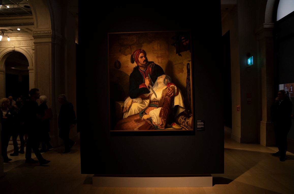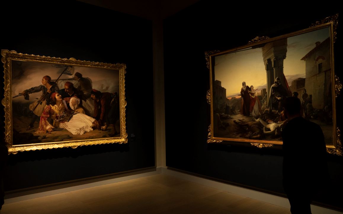 La grande pittura storica continua ad essere considerata il genere più nobile e l’obiettivo privilegiato da un pittore che ricerchi la fama. Indiscusso protagonista è Hayez con Romeo e Giulietta, o l’infelice Caterina Cornaro, in cui si identifica la gioventù destinata a realizzare l’Unità d’Italia. Karl Brjullov, Sebastiano De Albertis, Ludovico Lipparini, Pasquale Massacra, Cesare Mussini rivelano una novità sperimentale dove diversi linguaggi sono messi a confronto sul tema della morte dell’eroe: Francesco Ferruccio finito da Maramaldo e Marco Botsaris, immolatosi per la libertà della Grecia.