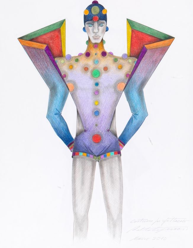 La rassegna si compone di 72 opere su carta di grande formato (cm 70 x 50) che rivelano un Roberto Capucci inedito rispetto al suo primato di couturier d’Alta Moda che lo ha reso famoso nel mondo. Roberto Capucci ha collaborato al cinema di Pasolini in Teorema (1968), corteggiato da registi del calibro di Luca Ronconi, e da alcuni enti lirici – dall’Arena di Verona al Teatro San Carlo di Napoli – che hanno avuto il privilegio di vestire di primedonne del canto, quali Raina Kabajvanska, in abiti Capucci.
