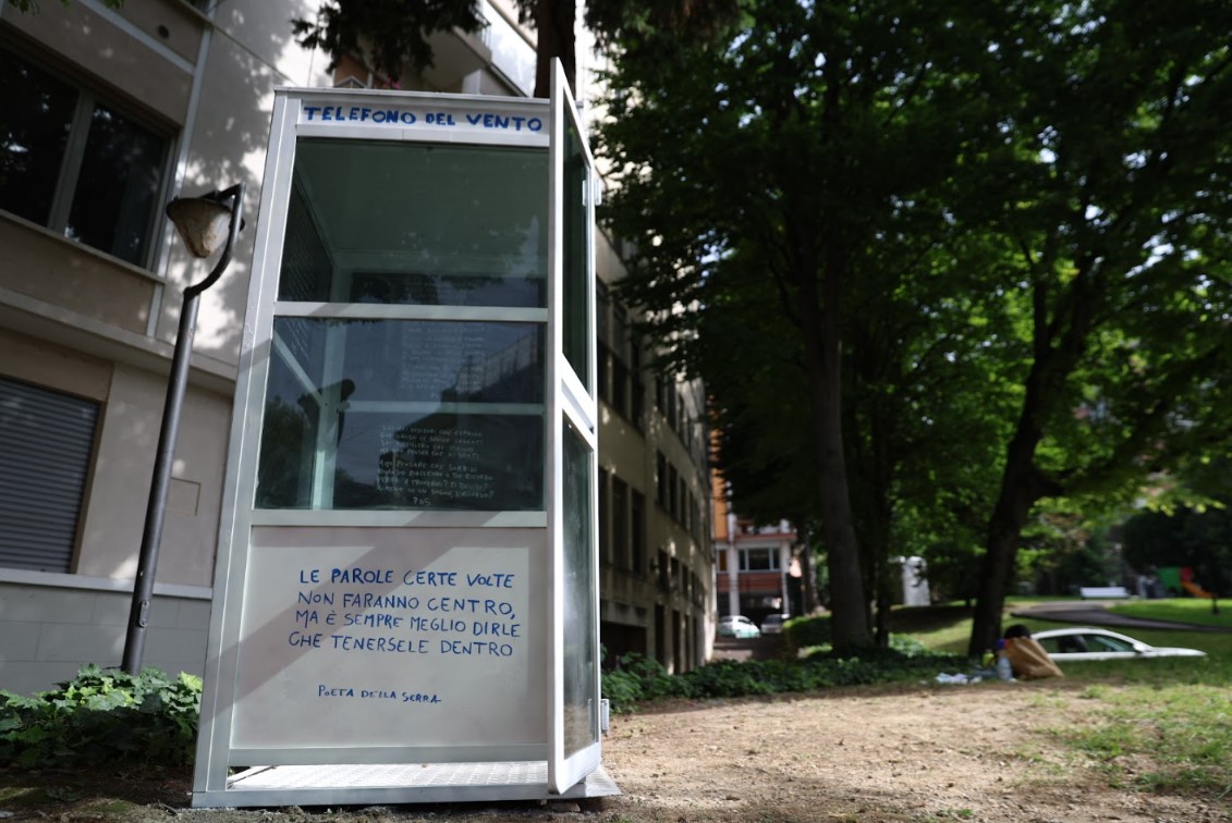 E, infine, il Telefono del vento (kaze no denwa)nato in Giappone nel 2010 arriva nei Giardini: è una cabina dove isolarsi per rivolgere ai propri cari defunti oppure a se stessi le parole che non si è avuto il tempo o il coraggio di dire/dirsi. Il Telefono del Vento sarà realizzato a Treviso in una versione “poetica” grazie ai versi composti site specific dal Poeta della Serra, scritti all’interno della cabina per ispirare i suoi utenti.