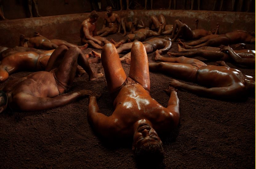 La fotografia che sta mettendo in evidenza su scala mondiale Jayesh Kumar Sharma è tutta incentrata su un’antica lotta indiana. Il kushti, o pehlwani, è la lotta tradizionale indiana sviluppatasi durante l’Impero Moghul (1526-1857) e oggi, mentre l’India avanza esuberante verso la globalizzazione, questa disciplina popolare appare un residuo rituale di forte identità.