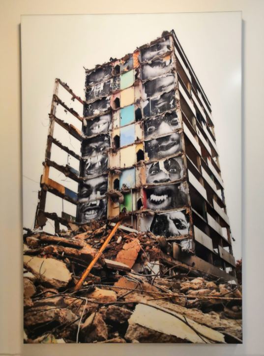 La mostra a Parigi torna anche sulle sue serie principali: Portrait of a Generation (una mostra di incisioni illegali di ritratti realizzati con un obiettivo da 28 millimetri); Women Are Heroes (che rende omaggio a coloro che svolgono un ruolo essenziale nella società ma che sono le prime vittime di guerre e conflitti); The Wrinkles of the City (un progetto su scala mondiale presentato in varie città del mondo dove si possono trovare “rughe” umane e architettoniche); Senza cornice (in cui JR reinterpreta le opere di altri fotografi, dando loro un nuovo significato estraendoli dal loro contesto originale).