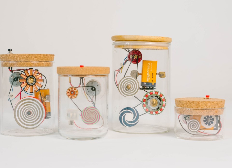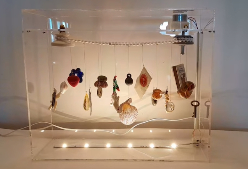 Viti e rondelle, bulloni e ingranaggi, palline e campanelli, nastri colorati e bulloni, interruttori e piume, elettromagneti ed eliche hanno trovato un nuovo moto, fornendo nuovi stimoli ad una creatività vulcanica e inattesa, disarmante e straordinariamente logica. Il movimento ed il colore, un “Carosello” o “Sfere celesti”, “Rotacolor” o “Passaggio a livello”, “Legami”, “Spirale”, “Lombruco”, “Farfalle”, “Ingranaggi”, “Dategli un nome”, “Tourbillon” sono solo alcuni degli incredibili congegni delle Macchine Inutili che stimolano la vista e lasciano incantati quel che rimane dell’infanzia nel profondo di ognuno di noi. Ogni creazione artistica è scaturita dalla sua eterogenea collezione di oggetti cresciuta negli anni. Tutto nasce dalla sua “capacità di smontare, classificare e riparare”, rimontando quegli stessi pezzi, senza tener conto delle “istruzioni, provando nuove combinazioni. Le soluzioni tecniche sono diventate sempre più sofisticate”.