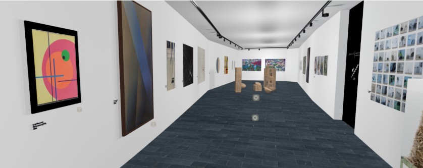 L’allestimento al Museo Man, curato dall’architetto Giovanni Maria Filindeu, organizza l’insieme delle opere esposte in una forma spaziale che richiama la configurazione di un arcipelago formato da piccoli raggruppamenti tematici. A guidare l’articolazione degli elementi, sia a parete che a pavimento, sono l’uso intenzionale e critico del colore e la scelta dei materiali. In particolare, il celenit (un aggregato di fibre di legno e cemento) utilizzato per le basi espositive, oltre all’impiego della sabbia lavata, legante naturale ed evocativo, i cui toni algidi sposano la palette estiva delle trame che disegnano mappe metafisiche.