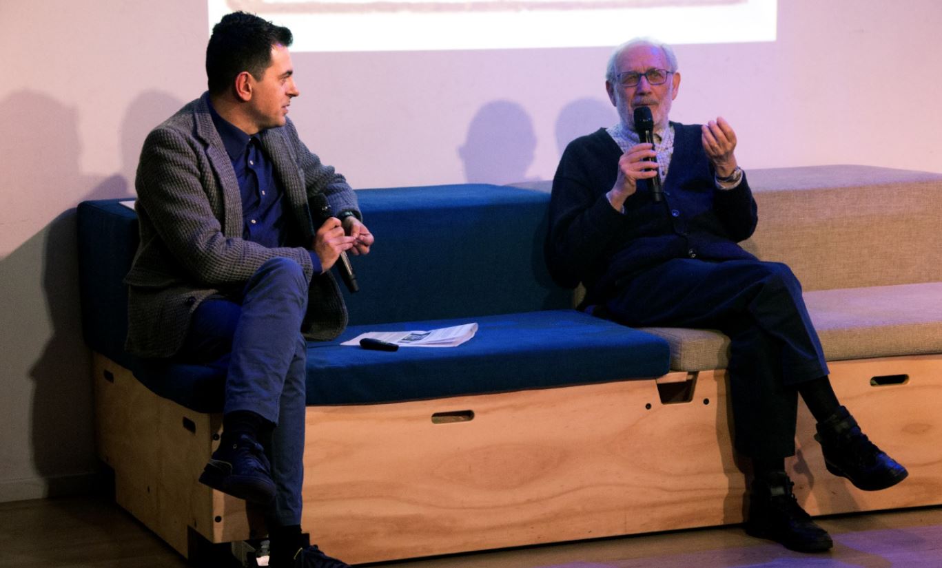 Dentro la Rovereto House & Lab di NoLo non vola una mosca. Centinaia di persone assiepate, sedute finanche a terra sono accorse alla rassegna Oi Dialogoi organizzata da The Way Magazine per assistere all’incontro/dibattito con Emilio Isgrò, uno dei più grandi artisti italiani contemporanei riconosciuti in tutto il mondo. Con il giornalista di questa testata, Christian D’Antonio, a introdurre l’arte del maestro con le slide proiettate a far da cornice, i momenti migliori dell’ora e mezza di talk sono arrivati proprio dallo scrigno dei ricordi dell’artista.