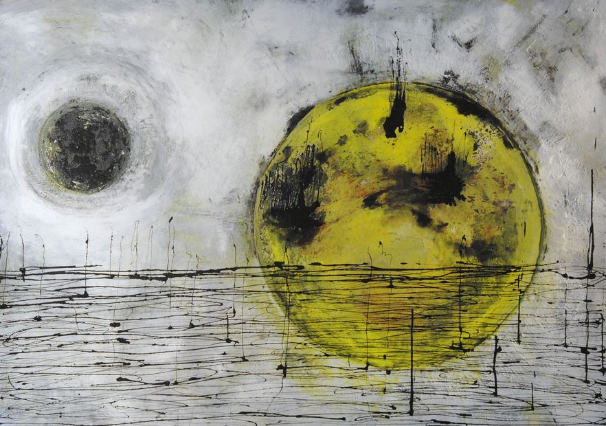 “Si tratta di intense ed emozionanti pitture che – spiega Erica Tamborini – sono costituite da tele di straordinario impatto visivo in virtù delle loro elaborate cromie in cui l’iconografia lunare si fa pretesto per la realizzazione di una splendida action painting dove astrazione e figurazione si fondono generando inattesi testi pittorici di indubbia valenza estetica”. Sono quadri “astratti” e “materici”, “figurativi e non-figurativi” di grande suggestione, in merito a cui dichiara ancora Tamborini: “Realizzati con pigmenti puri, trattano il tema della Luna attraverso un susseguirsi di immagini, di impronte e rilievi che conferiscono all’astro sidereo un carisma particolare ora declinato in un valore simbolico, ora in un sogno, ora piuttosto in un’allusiva restituzione naturalistica, se non in una proiezione scientifica richiamante sottotraccia i precedenti studi leonardeschi sul tema”.