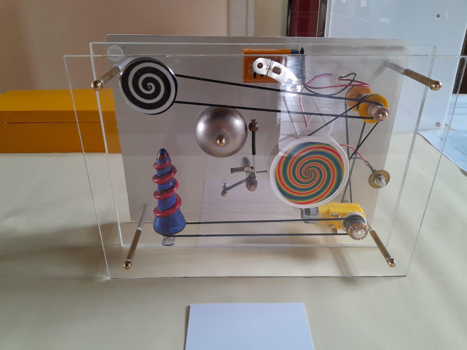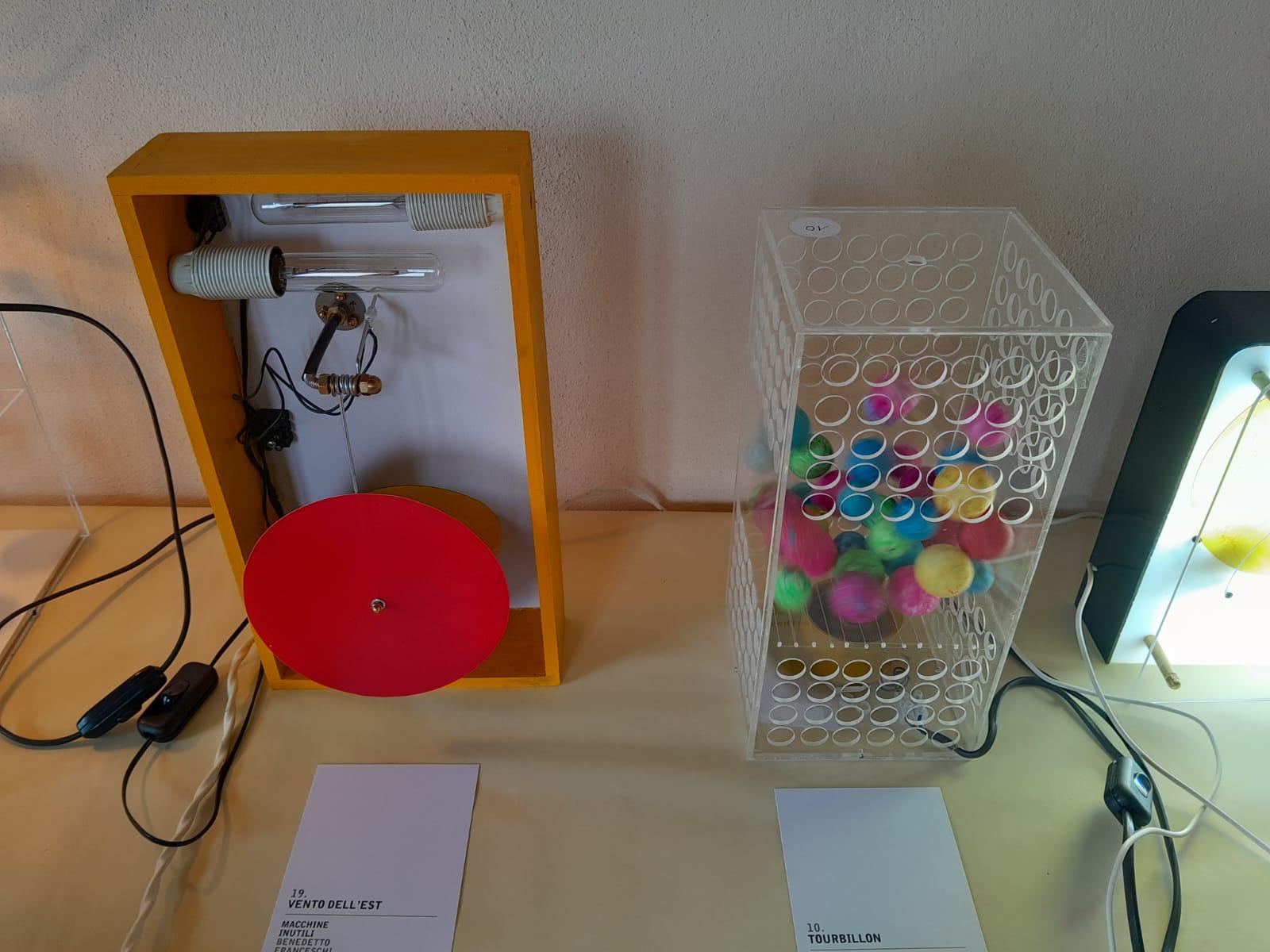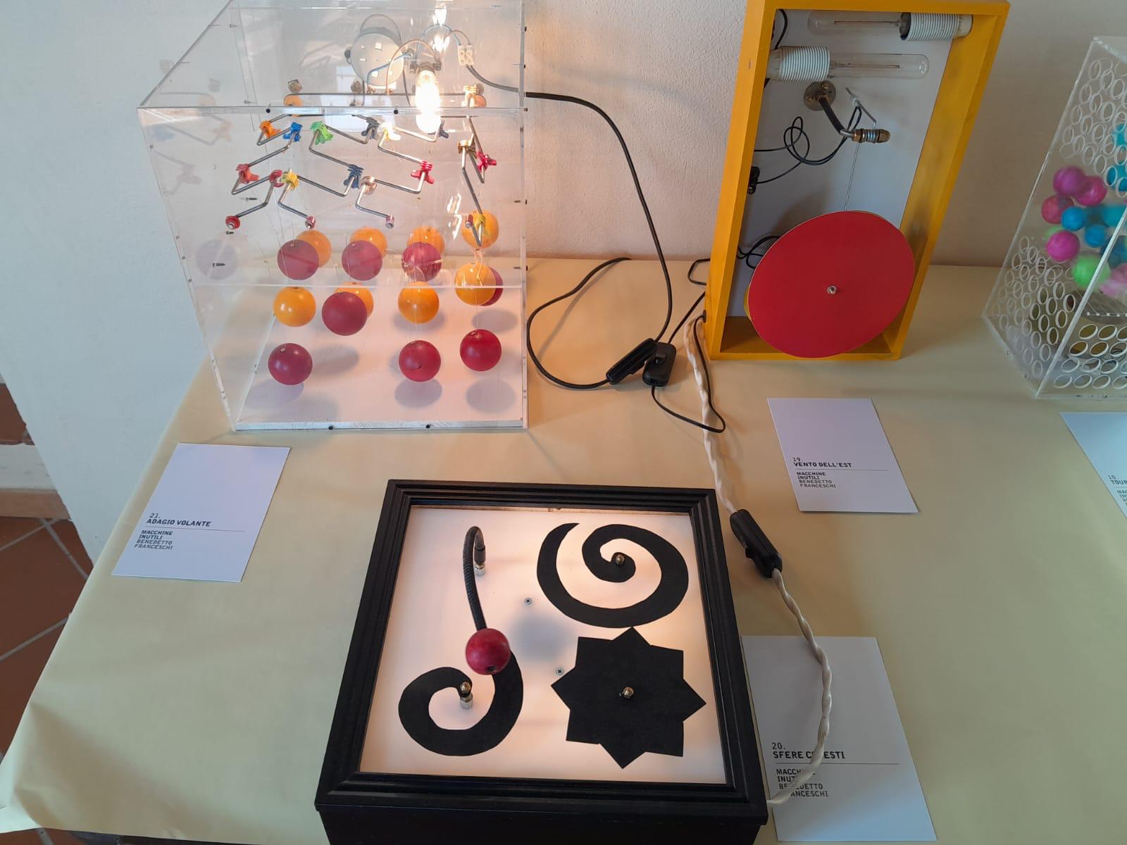 Le “macchine” di Franceschi non sono state realizzate per produrre, correggere, velocizzare o ottimizzare, tuttavia invitano a riflettere. Traggono la loro genesi da oggetti della quotidianità. Talora sono pezzi piccoli o più grandi, quali relitti della società consumistica, spesso rotti, dimenticati, scartati che Benedetto ha raccolto nel tempo con la pazienza di chi sa che qualcosa tornerà utile. Interruttori, campanelli, bulloni, eliche, piume e nastri, pezzi di strumenti scientifici che ritrovano una vita rinnovata, rimontati secondo la genialità dell’artista. Nessuno fine ultimo preciso; solo quel senso della meccanicità del movimento, del dinamismo che sottende alle sue creazioni. “Nato a Pozzuoli nel 1940, Benedetto Franceschi ha iniziato fin da bambino a smontare ciò che non funzionava. Invece di aggiustarlo, lo ha ricomposto a modo suo. Da questa attitudine nasce un percorso che lo ha portato a costruire oltre cento “macchine inutili”, oggi presenti in collezioni private in Italia e all’estero, e già esposte in sedi come il Palazzo dello Spagnolo di Napoli, la Galleria NINA, la Pinacoteca Provinciale di Salerno e lo Studio Orma di Roma. La sua pratica richiama gli esperimenti ironici e ingegnosi di Bruno Munari e dialoga idealmente con le sculture cinetiche di Jean Tinguely, ma se ne distacca per un approccio più artigianale, essenziale e profondamente personale. Franceschi ha dedicato la sua ricerca alla trasformazione di materiali tecnici in forme poetiche, seguendo un’intuizione infantile rimasta intatta nel tempo: che ogni oggetto rotto contenga già un’altra possibilità”.