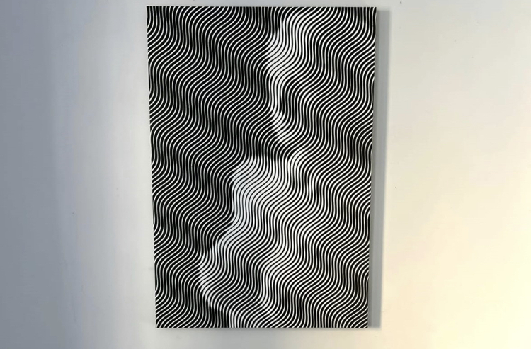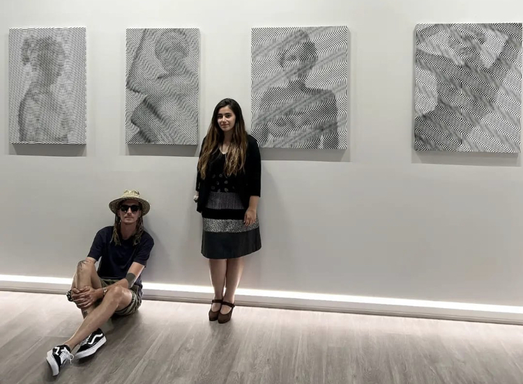 “Centrale del lavoro di Crespi è la rivisitazione di opere e personaggi del passato in chiave contemporanea attraverso un linguaggio squisitamente personale e ben decifrato. Mendiate la fruizione dell’illusione ottica, linee infinite che non si toccano mai invadono le sue tele, come quasi a solcare innumerevoli vie che lo spettatore può percorrere liberamente. La nuova collezione presenta alcune delle più importanti icone femminili della mitologia greca nelle vesti di ninfe contemporanee. Ogni opera pittorica è caratterizzata da una bellezza velata e al contempo svelata mediante la fruizione del digitale” (Alisia Viola)