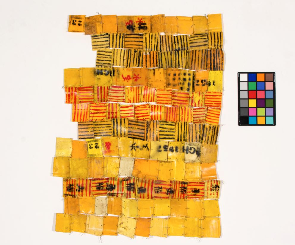 Le sue opere, che tradiscono il legame con la tradizione tessile africana del Kente, sono arditi assemblaggi che esplorano i linguaggi della forma e dell’astrazione con le quali eleva il materiale ad un potente simbolo del sistema economico, del commercio e del riutilizzo, ma anche della globalizzazione e del ruolo del Ghana in questo contesto. L’artista ghanese utilizza i gallons tagliandoli in frammenti per ridurne il volume e quindi crea questo processo di tessitura nel quale fonde diverse storie perché i galloni provengono da persone diverse e da diverse parti del paese. Ogni tessera di plastica ha tonalità di giallo diversa per la differente provenienza geografica, per il contenuto originario (benzina o olio) o a causa dell’età dei barili. “Quando unisco le tessere attraverso il processo artistico cambia la forma, cambia il valore e cambia la percezione della gente nel considerare la plastica”. Le tessere riportano anche i segni che servivano al riconoscimento dei galloni da parte dei proprietari oppure i codici a barre che creano una sorta di tessuto mimetico o i caratteri cinesi, indicativi di nuovi riferimenti di potere in Ghana.