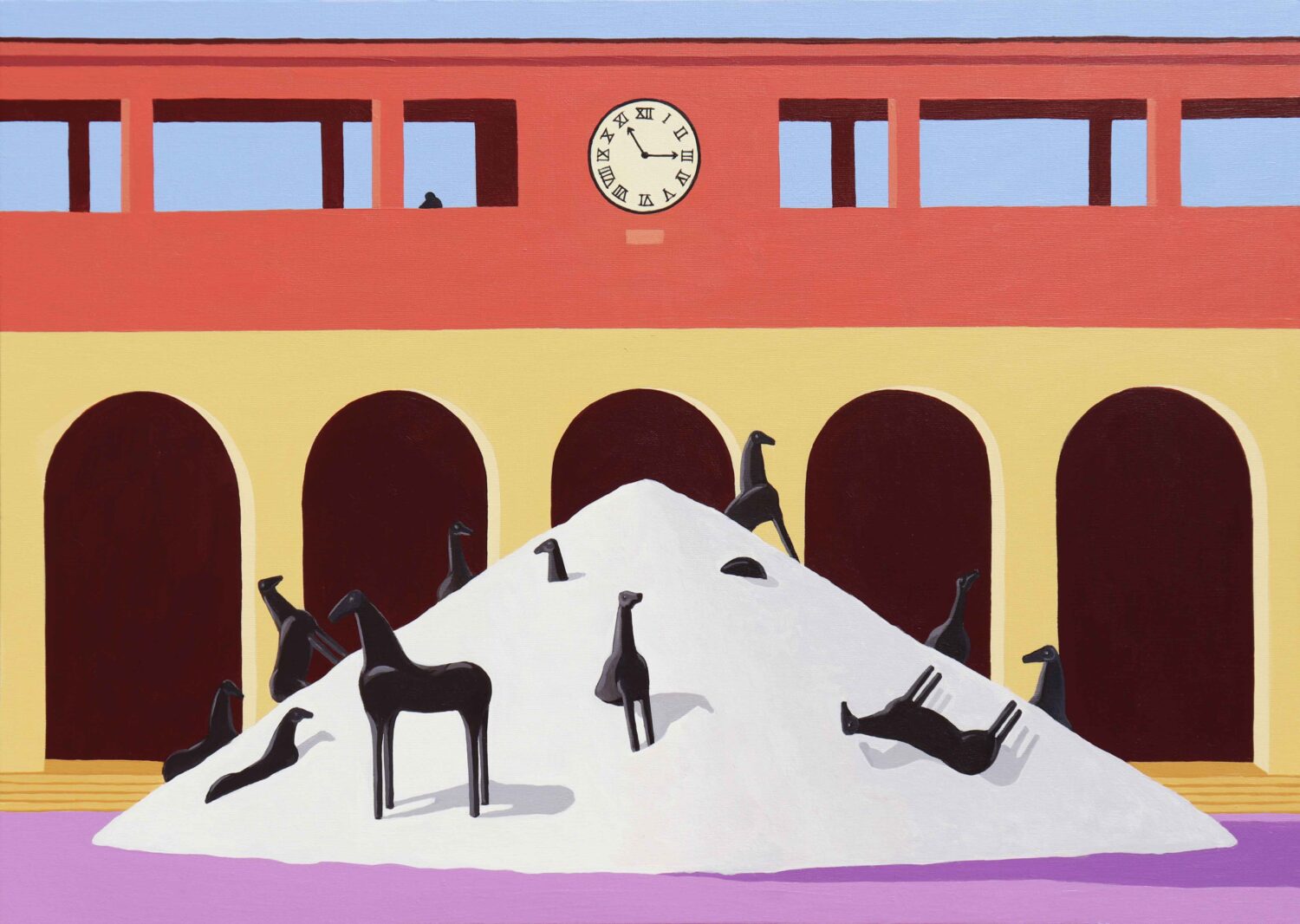 Come un atlante postmoderno Piazze d’Italia si muove tra citazione e reinvenzione, tra l’enigma esistenziale di De Chirico e la diabolica fenomenologia dell’arte contemporanea. Nella Magic Bus, la project room della galleria milanese di Brera dedicata alla sperimentazione e ai linguaggi emergenti, la personale di Giuseppe Veneziano, Piazze d’Italia, sempre a cura