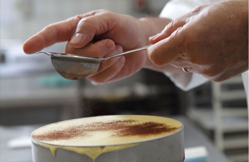 L’originale tiramisù di Gino Fabbri è una rivisitazione in chiave moderna della ricetta di famiglia. Il segreto è una crema pasticcera ricca di tuorli (30 ogni litro di latte), che vengono poi uniti alla panna montata e al mascarpone. Si stende il preparato sopra ai savoiardi già inzuppati con la bagna al caffè, a cui si aggiunge una spolverata di cacao. Infine, si ripete quest’ultima operazione per creare un secondo strato di savoiardi, crema e cacao.