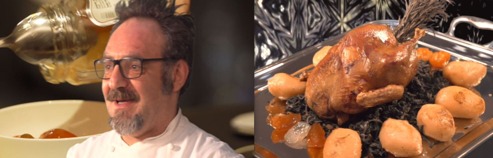 La Tacchina ripiena interpretata dallo chef Paolo Lopriore del ristorante Il portico ad Appiano Gentile (CO). Lopriore predilige la carne della tacchina perché ritenuta più tenera e prelibata di quella del maschio ed è cucinata con una particolare farcia composta da castagne secche, mele, pere ben sode, prugne nere e gherigli di noce.