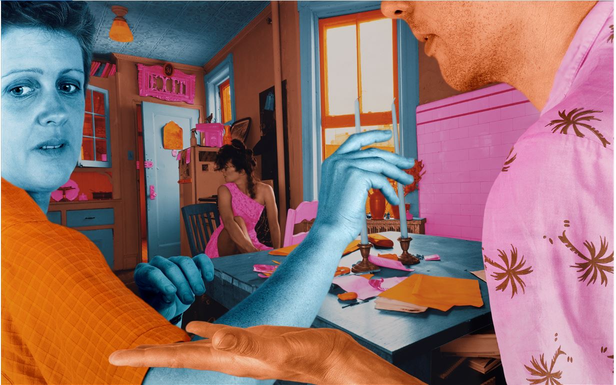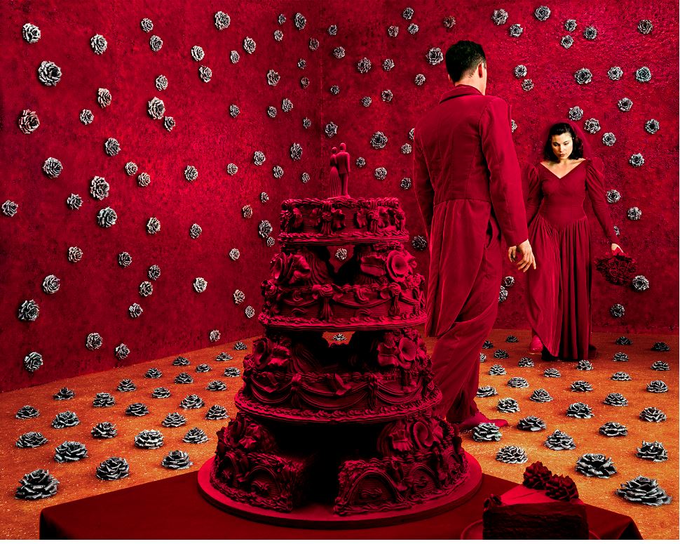 La mostra permette dunque di seguire questo percorso attraverso oltre cento fotografie, quasi tutti di grande formato, e sculture. Si va dalle prime serie fotografiche prodotte a metà anni Settanta, dove già emergono i temi caratteristici dell’interno domestico e della sua trasformazione in luogo di apparizioni tra comico e inquietante, fino alle grandi composizioni dei primi anni Ottanta, che hanno dato all’artista fama internazionale.