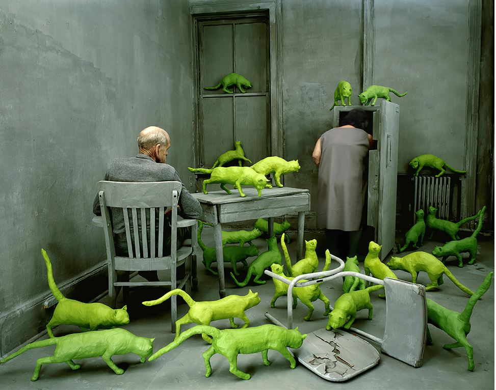 Sandy Skoglund (1946), in questa mostra curata da Germano Celant, si presenta al pubblico italiano con una retrospettiva che abbraccia vari decenni di lavoro e da cui si evince che anche se i gusti sono attraversati con veemente carica espressiva dalla sua opera, lo stile è sempre molto riconoscibile.
