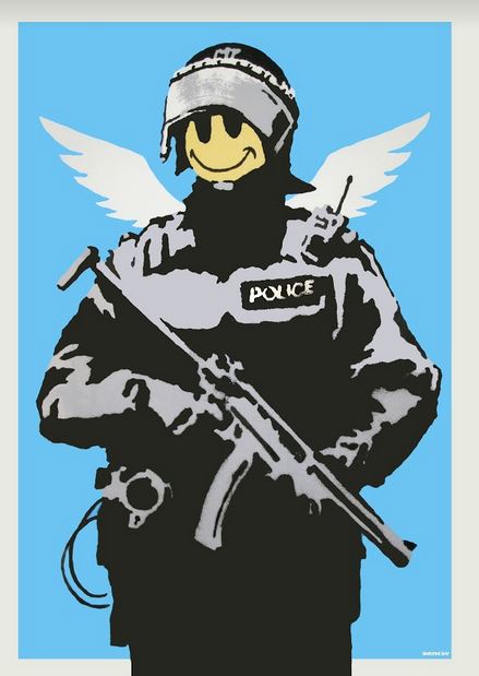 Banksy, artista e writer inglese la cui identità rimane tuttora nascosta, è considerato uno dei maggiori esponenti della street art contemporanea. Le sue opere sono spesso connotate da uno sfondo satirico e trattano argomenti universali come la politica, la cultura e l’etica. L’alone di mistero che, per scelta e per necessità, si autoalimenta quando si parla della figura di Banksy lo fa diventare un vero e proprio mito dei nostri tempi. La sua protesta visiva coinvolge un vastissimo ed eterogeneo pubblico e ne fa uno degli artisti più amati dalle giovani generazioni.
