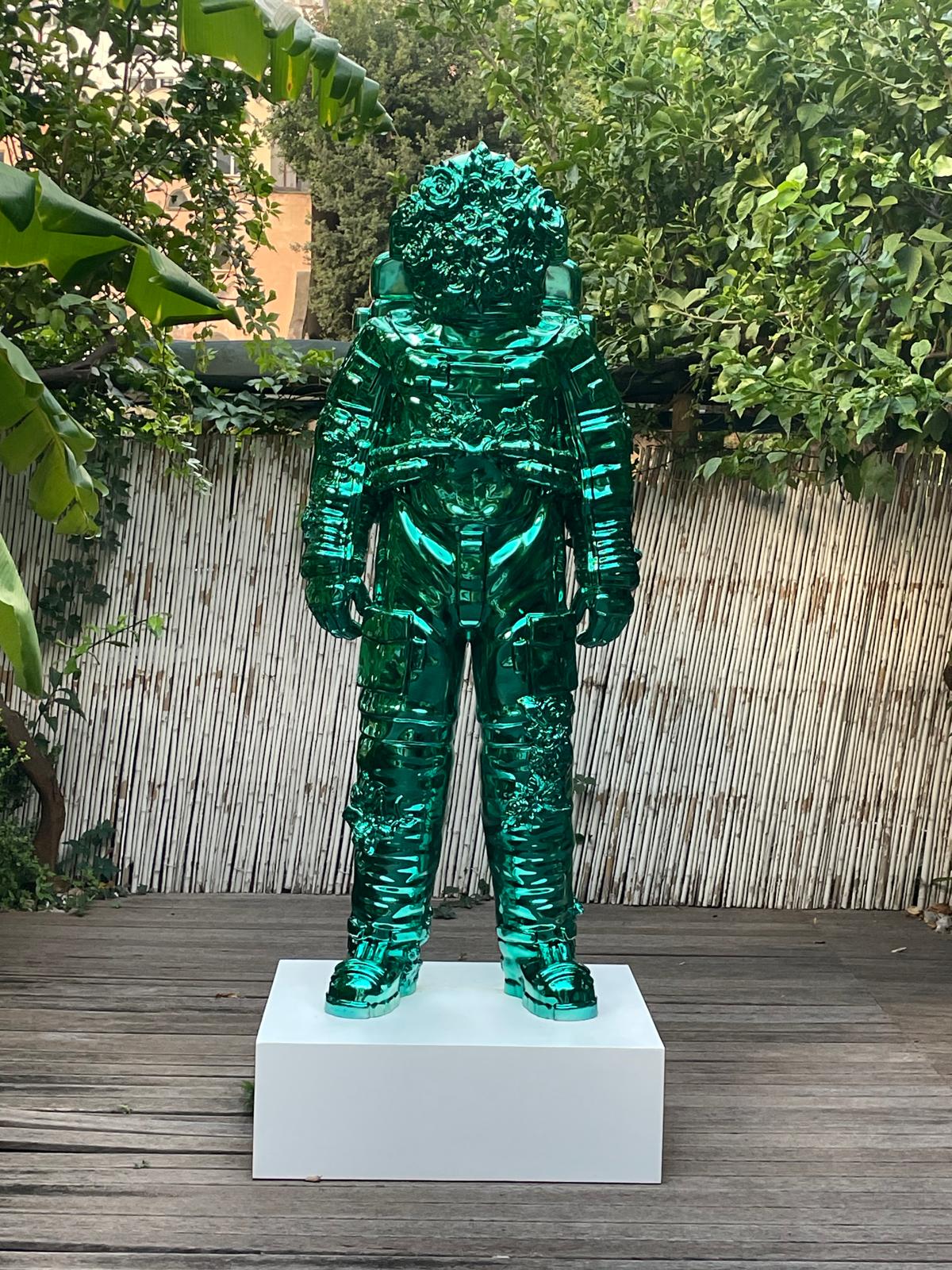 In foto di apertura un lavoro di Giacinto Bosco, uno dei principali e rinomati scultori figurativi in Italia, tra coloro che proseguono la grande tradizione classica del Novecento. Le sue sculture, in cui la solidità del bronzo è messa al servizio della leggerezza del sentimento amoroso, raffigurano spesso amanti che anelano alla luna, in equilibrio reggendosi a sedie e scale, proprio come un “mirroring” del territorio di Positano, la cittadina della costiera amalfitana arrampicata sulla roccia e sospesa sul mare. I personaggi di Bosco, arrampicandosi su corde, danno vita a scene di tendenza all’amore, figure elementari che aspirano alla luna immaginate in ambienti notturni.