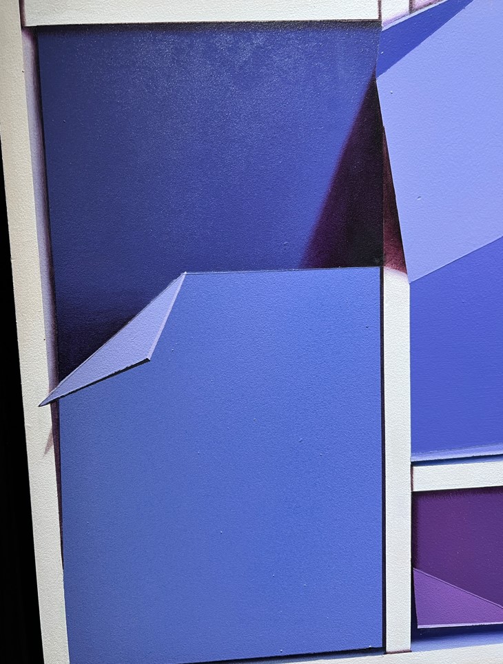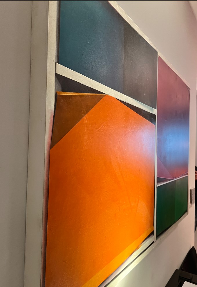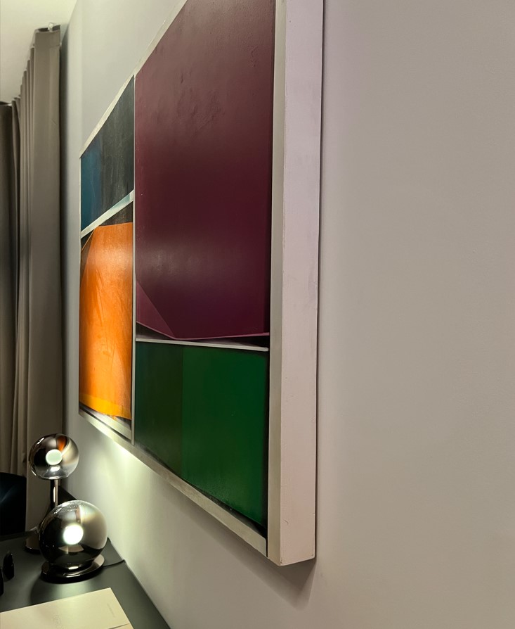 L’artista usa il colore come fogli sparsi su di una ipotetica scrivania ordinata, mentre le forme e le geometrie vengono incasellate in una griglia inusuale e astratta. I lavori sono definiti fragili, dei puzzle, quasi a voler dare un significato concreto e una connotazione pratica di un lavoro che semplicemente vuole spingere alla contemplazione del piacere cromatico, estetico e visivo come un occhio che quotidianamente è stimolato dai colori della vita.