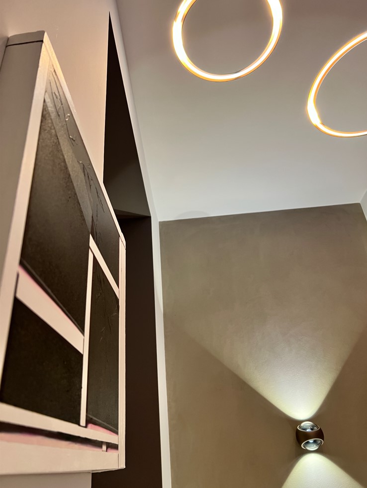 La luce, elemento base della storia di OCCHIO e materia fondamentale dell’arte, si incontrano così per creare un connubio che va ad esaltare questa collaborazione grazie ad uno studio site specific di illuminazione pensata appositamente per le opere esposte.