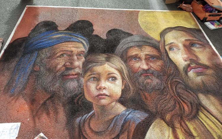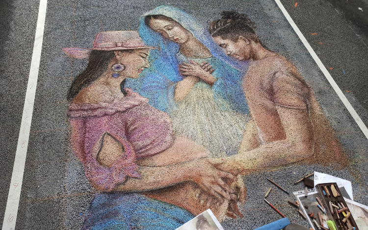 Tutto questo è il concorso dei Madonnari che continua la sua tradizione dal 1999, anno della prima edizione. Da venticinque anni, tutta la cittadina campana, prossima a Pompei, si anima e si prepara all’accoglienza durante una settimana fatta di incontri sul tema proposto.