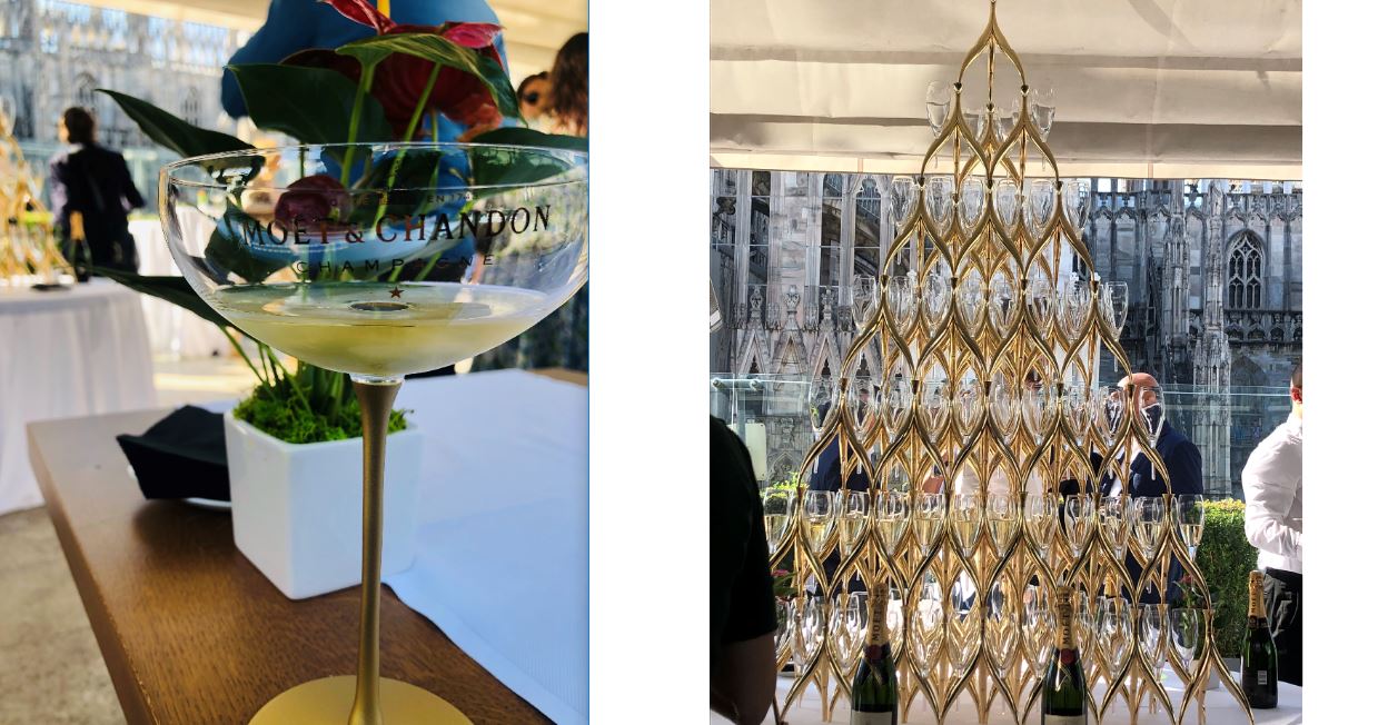 Il marmo verde Alpi utilizzato per il bancone del Champagne Bar, è stato rivisitato grazie ad una lavorazione a basso rilievo rendendolo più tridimensionale e protagonista. Accoglie l’ospite e lo invita a degustare le migliori annate di Moet & Chandon, accompagnate da cruditè di pesce e proposte culinarie raffinate.