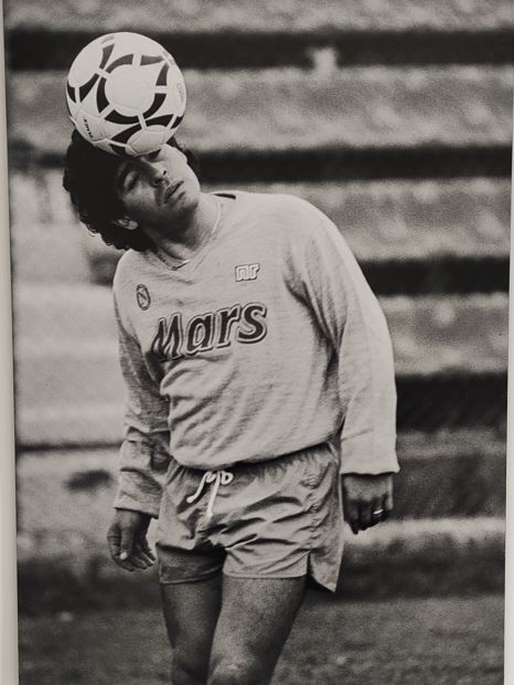 Maradona è giustamente lodato come uno dei più grandi calciatori di tutti i tempi, per i napoletani è uno del popolo: è l’amico che devono aiutare nelle grandi difficoltà, è la donna bellissima della porta accanto, e il genitore da accudire. Il suo contributo al gioco è stato documentato da una vasta gamma di artisti e fotografi di talento, tra cui Sergio Siano che lo celebra con foto che fanno risaltare la personalità vibrante e creativa del calciatore argentino.