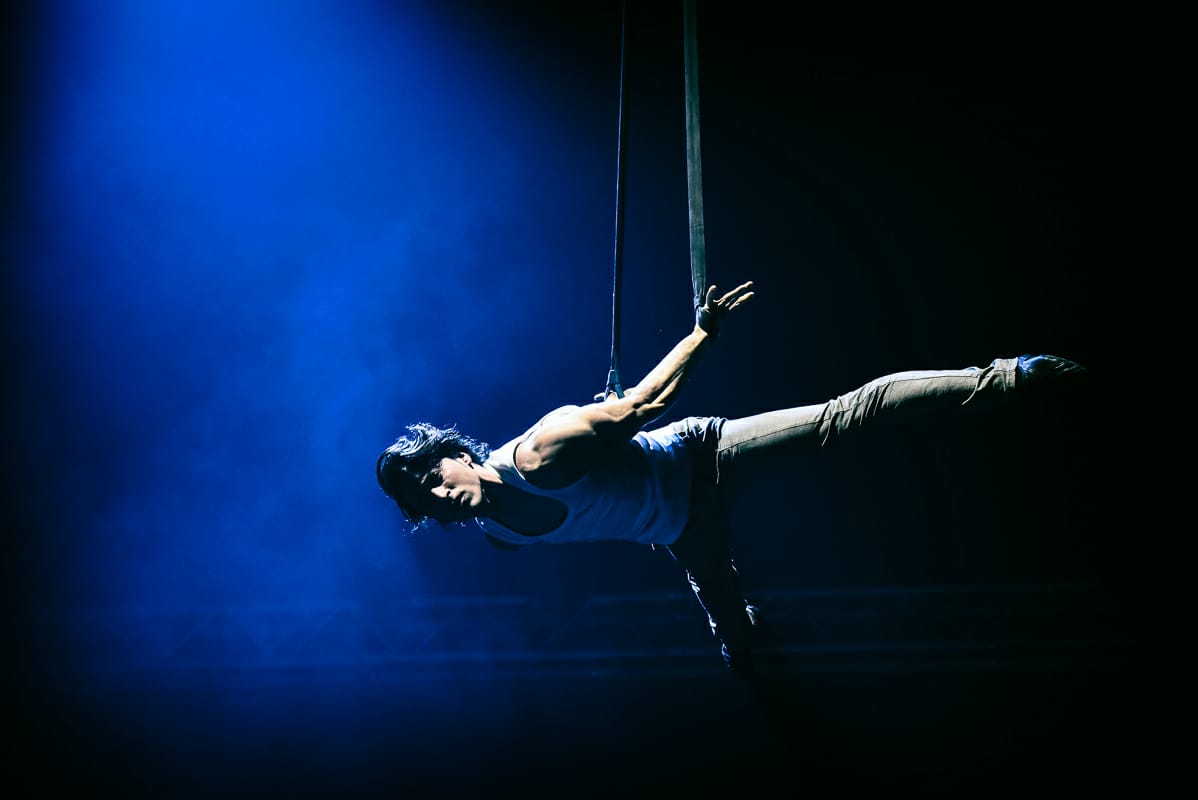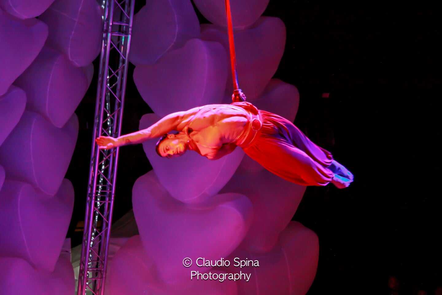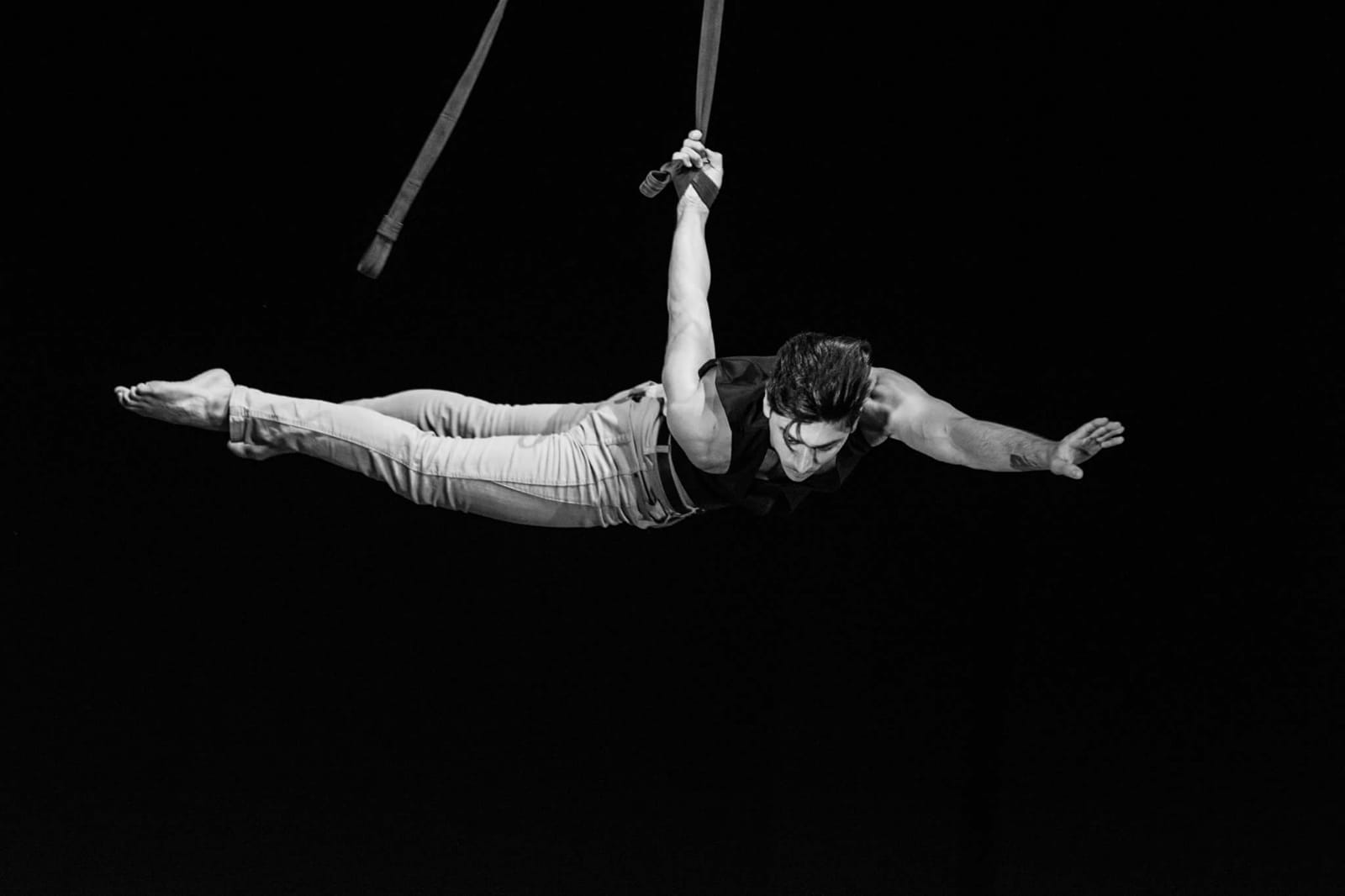 Personalmente la cosa che mi colpisce di più come riuscita, è il lavoro fatto a coppia, sia in aria che a terra. In aria per me è molto più scenico, sembra che i corpi danzino e si fondano come se fossero saldi a terra e invece sono sospesi.